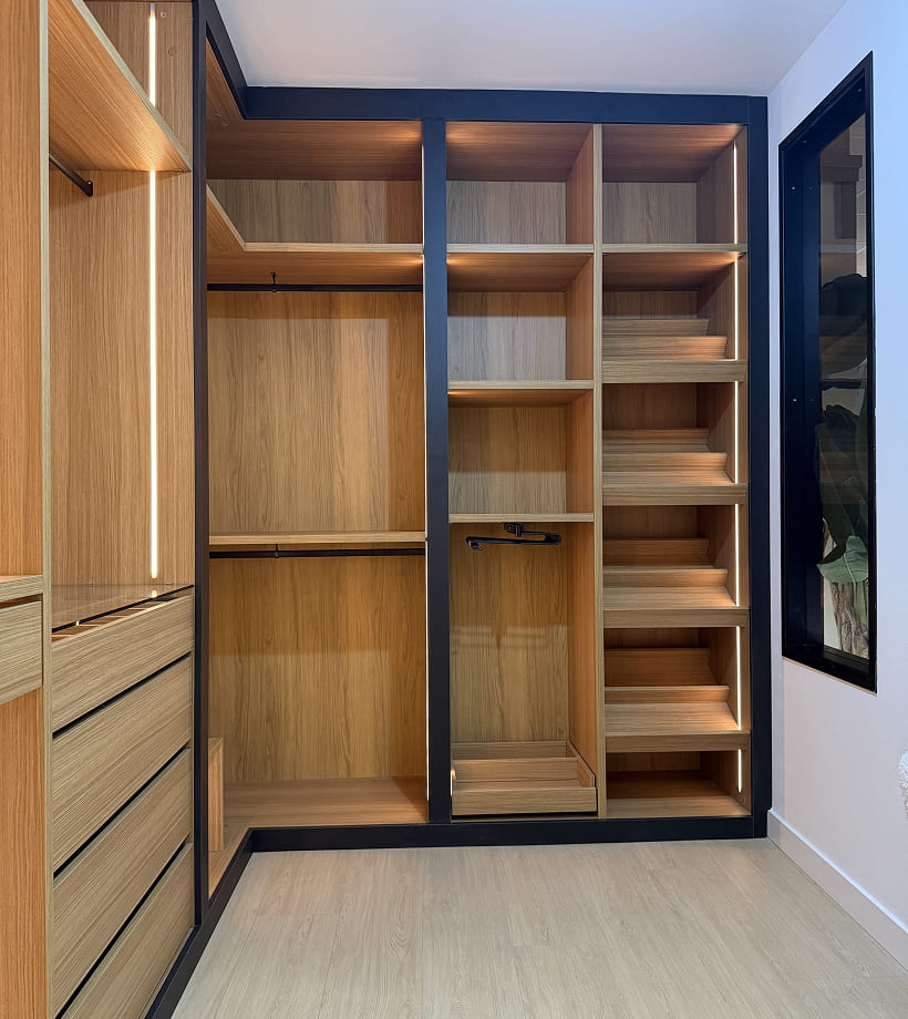 Once the design is approved, your custom closet is professionally fabricated to exact specifications using high-quality materials. Every component is carefully produced to ensure durability, accuracy, and a perfect fit.