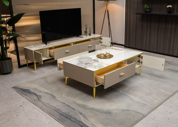 2307 Coffee Table with Drawers and Storage and Marble Style Porcelain Top