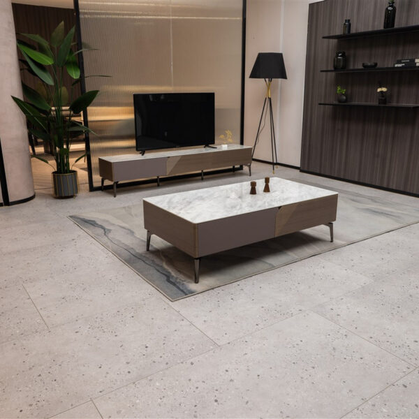 Wally Rectangular Coffee Table with Porcelain Light Grey Top