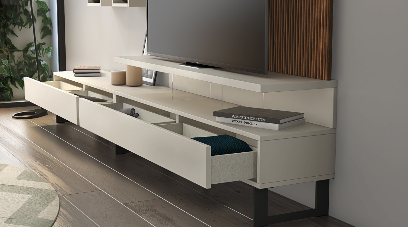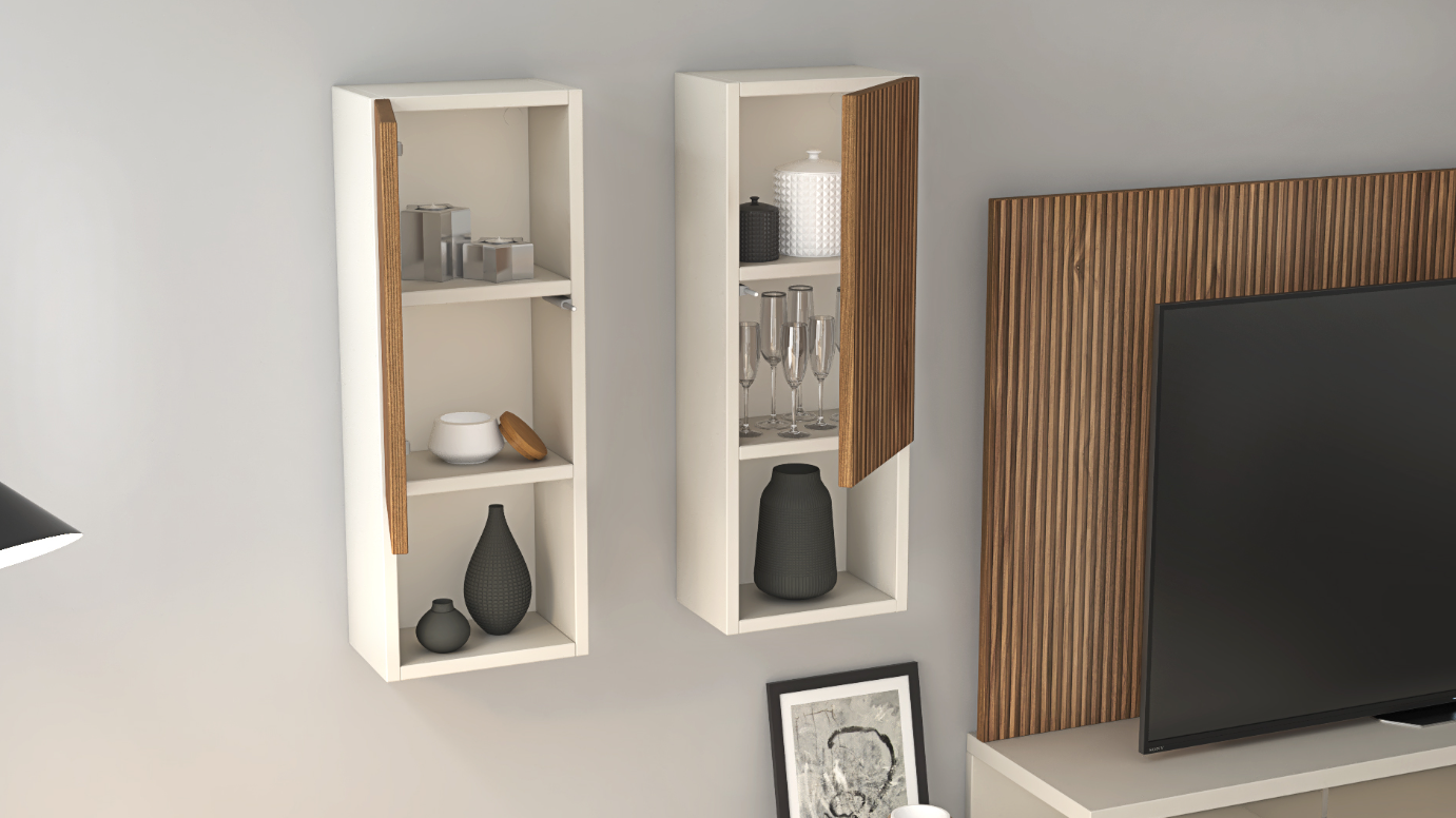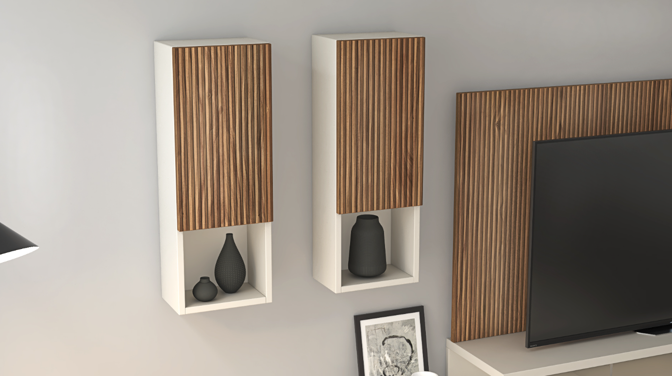 Composition: Long TV Stand: Wall Mount Vertical Storage Units (Set of 2): This set not only serves as a functional foundation for your entertainment area but also as a statement piece that seamlessly blends with various interior designs. The Collection Alba is perfect for those looking to organize and elevate their home entertainment setup stylishly.