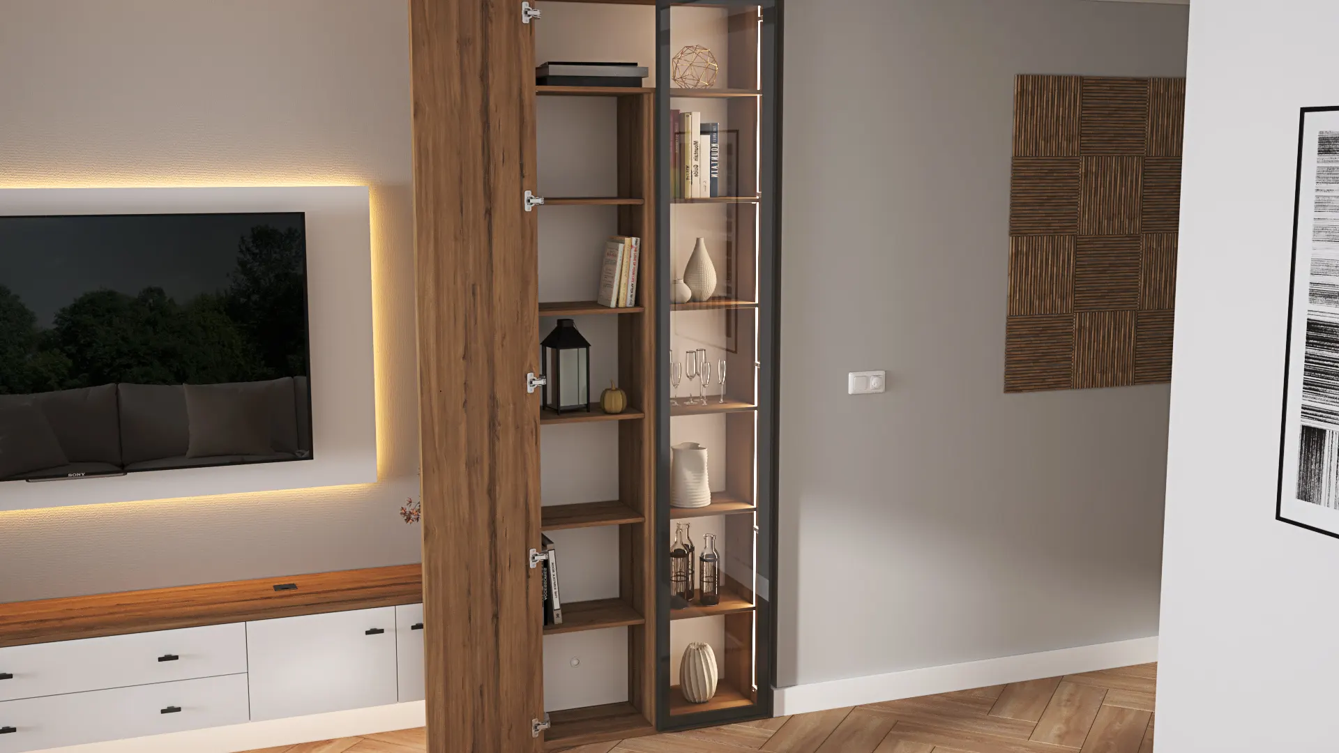 • Curio Shelving: W34″ x D15.75″ x H100″