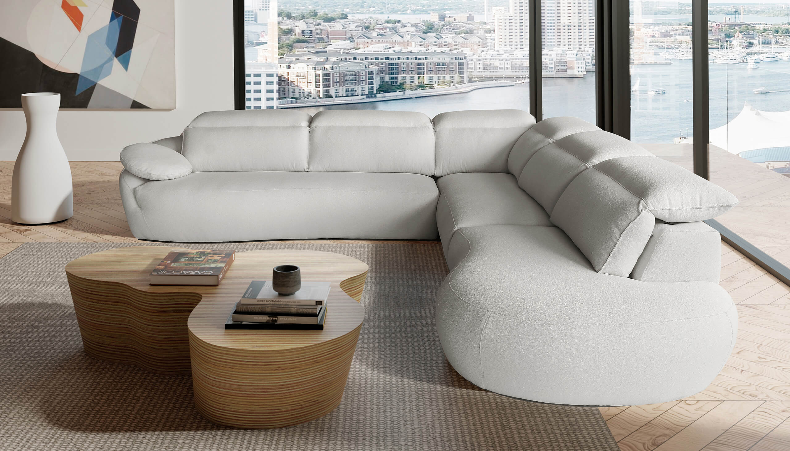 Our Barcelona collection…  Escape hard edges and sharp corners with its fluid, round silhouette.  Once you sit down on Barcelona, you never want to get up.