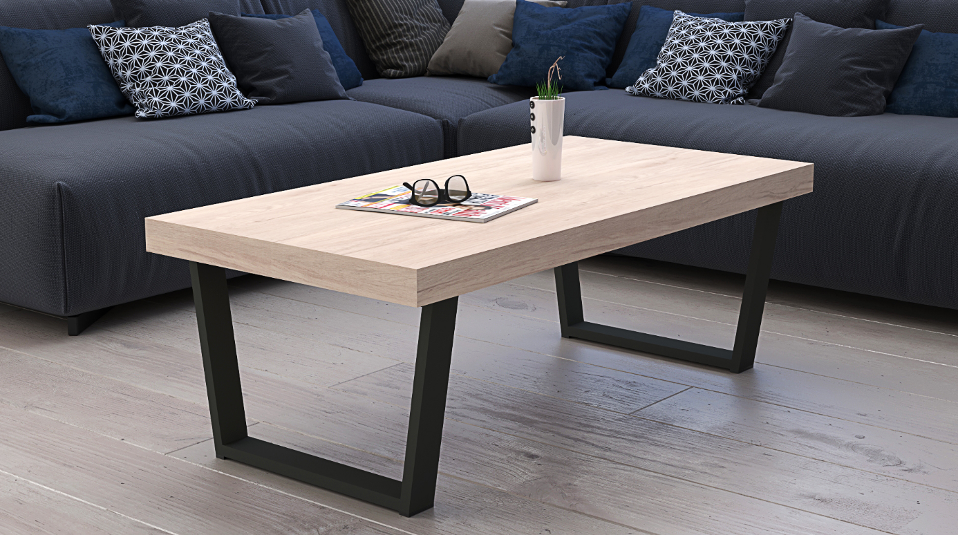 Elegant Coffee Table: Mirroring the collection’s design ethos, the coffee table on black metal legs offers a perfect blend of functionality and style. Its top in Roble Aurora provides a sturdy and warm surface for beverages, books, or decorative pieces, making it a versatile addition to any seating area.