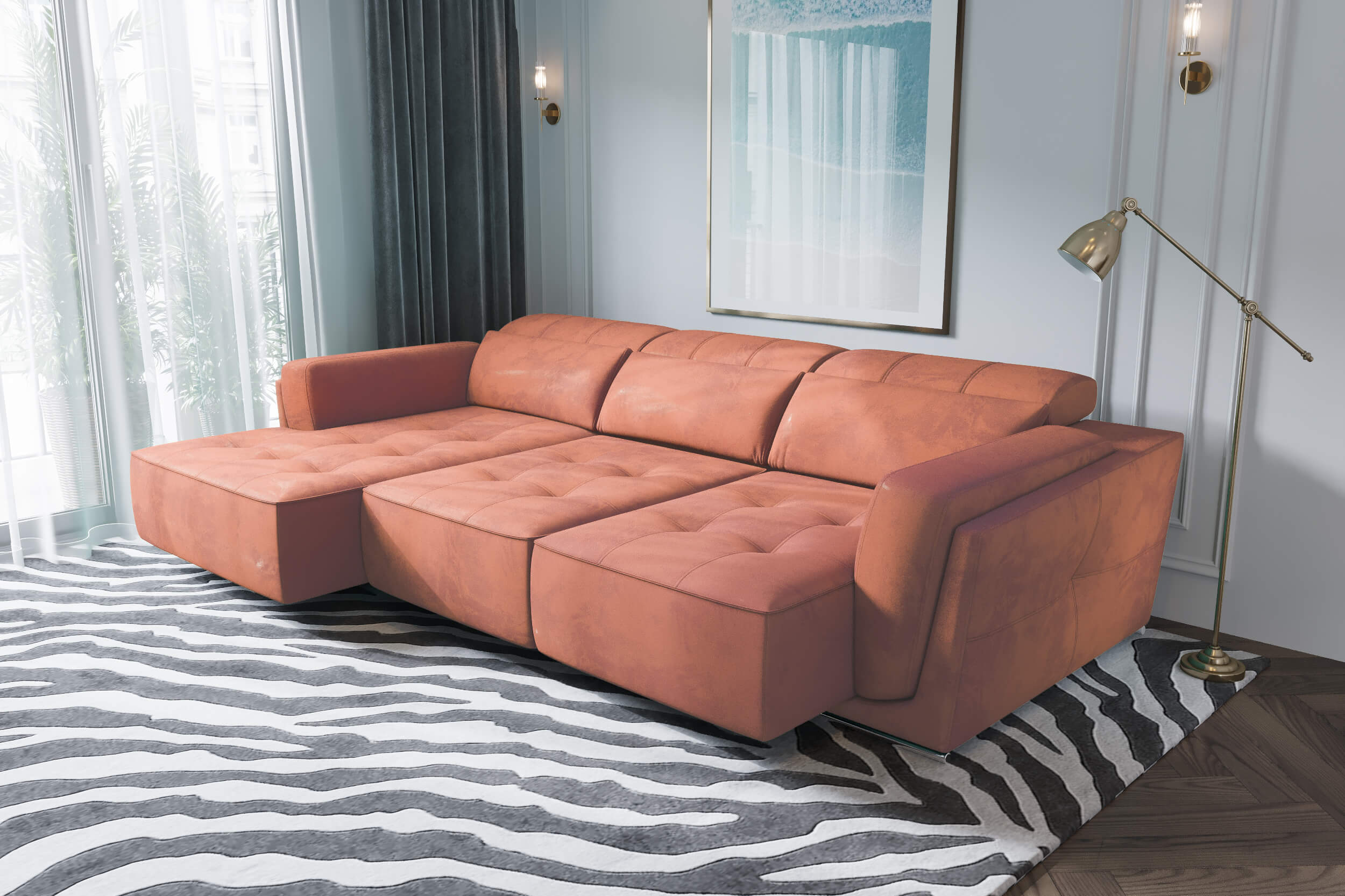 The Bilbao sectional combines modern and contemporary design with unparalleled comfort and functionality. Combined with the Bilbao chaise lounge, extending the two individual seats to their maximum creates a full size bed. Our unique pocketed coil spring cushions provides a comfortable sleeping surface unmatched by any ordinary sofa bed.