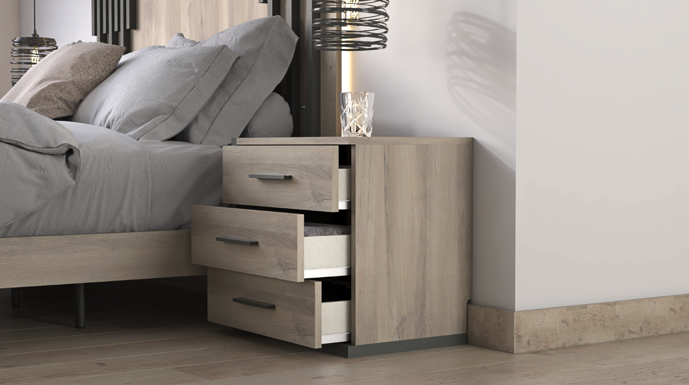 The Bodega collection is the epitome of industrial style, where functionality meets design in a stunning display of aesthetic coherence. The use of Iron Oak and Pizarra not only adds depth to the overall design but also pays homage to the raw, unrefined beauty of industrial materials. This bedroom set is perfect for those looking to make a statement with their interior design, providing a stylish yet practical space where every element is thoughtfully curated to bring the industrial vision to life.