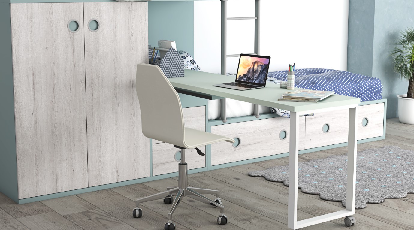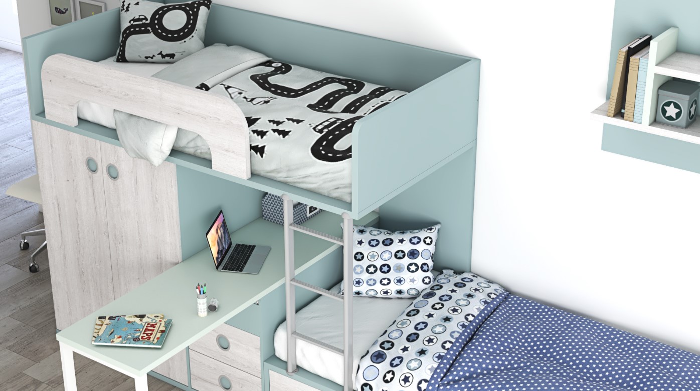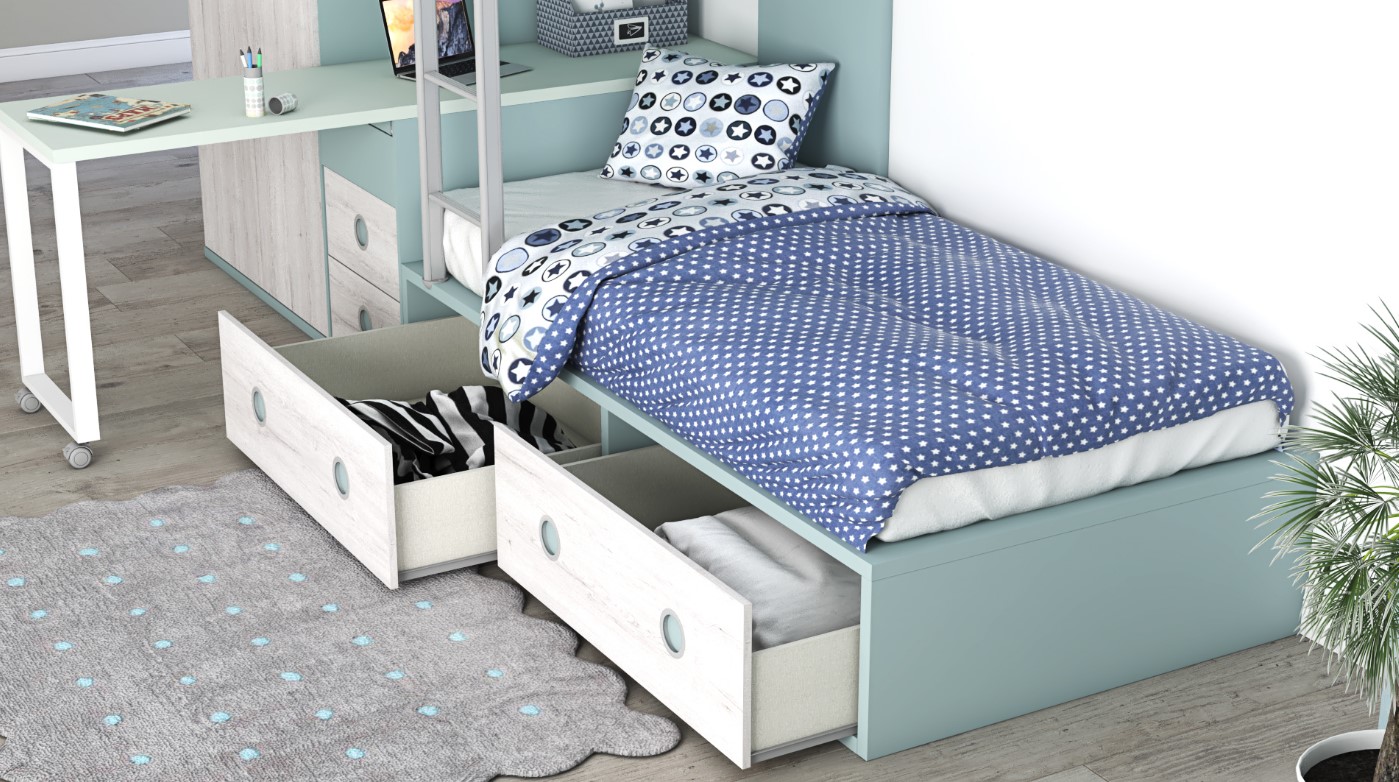 Bunk Bed with Storage Solutions: At the core of the Cádiz Caracola collection, the bunk bed serves as a beacon of efficient design and cozy retreat. Equipped with two spacious storage drawers, it provides ample space for stowing away treasures and essentials, keeping the room tidy and serene. The integration of storage within the bed design ensures that functionality and elegance sail in unison. The Cádiz Caracola collection invites you to infuse your space with the serene yet vibrant essence of the coast. Each piece, from the multifunctional bunk bed to the space-saving desk and the capacious wardrobe, is crafted to elevate your daily living with a splash of color, a wave of functionality, and a breeze of inspiration.