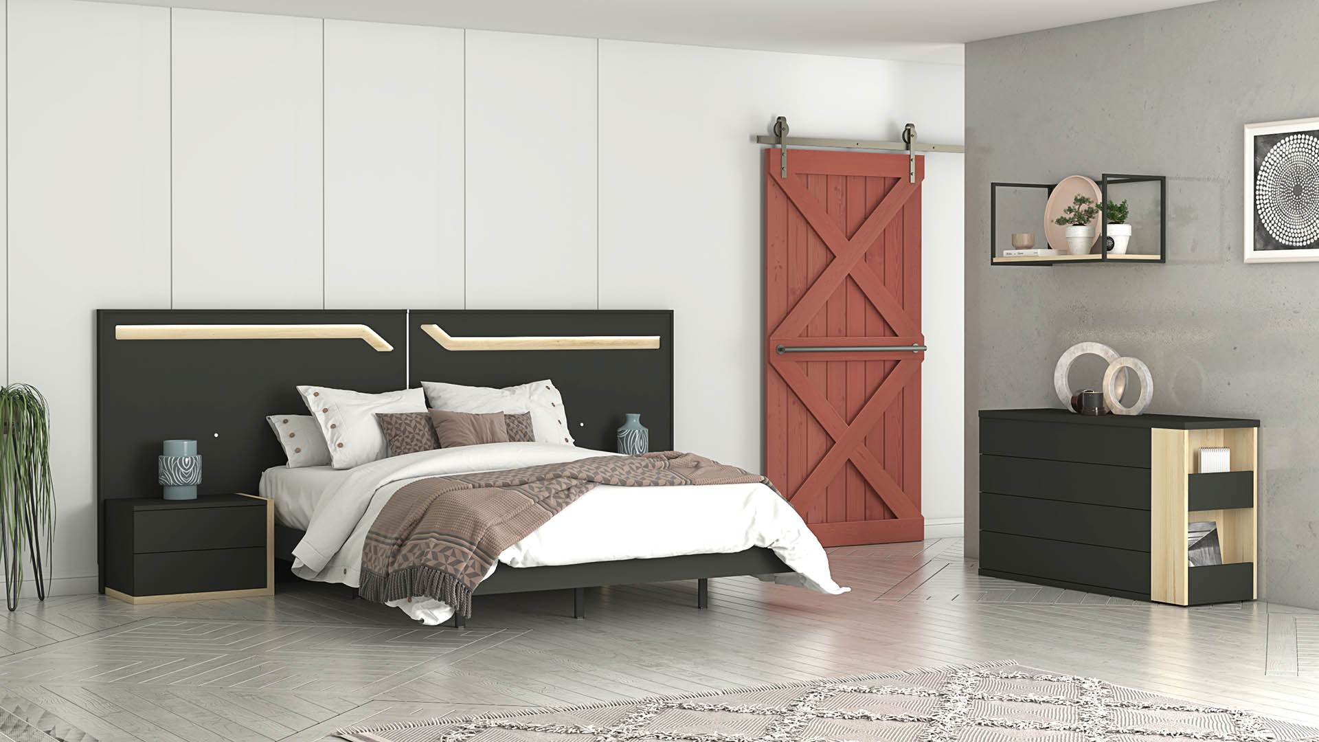 The Calida Bedroom Collection by Modekraft, available at Euro Elite Furniture, is a modern European bedroom set designed for elegant living and everyday comfort. Featuring a rich Pizarra finish with warm Haya Gala accents, Calida delivers a refined, contemporary look that fits both luxury and modern interiors.