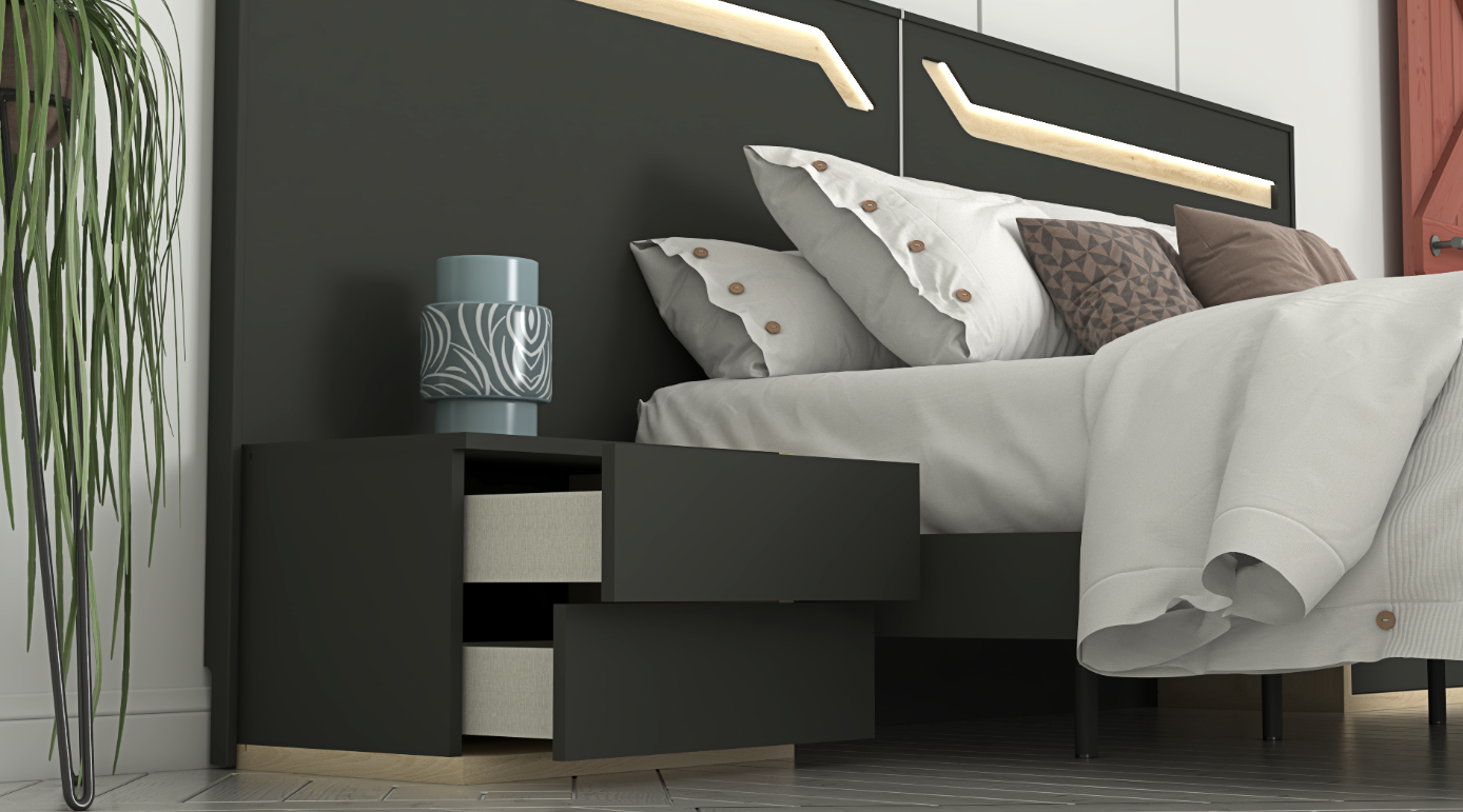With integrated lighting, smart storage, and a cohesive modern design, the Calida collection is an ideal choice for customers looking for a stylish, functional, and well-organized bedroom.