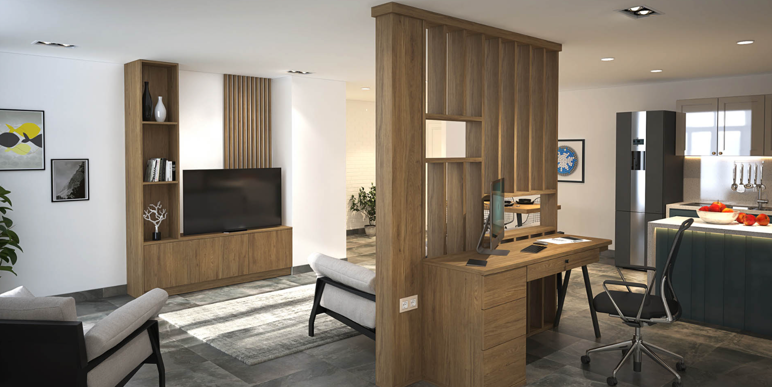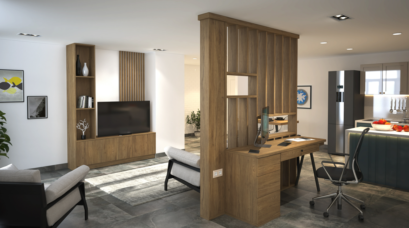 Composition: TV Stand Unit with Built-in Single Tower/Hutch: Room Divider Unit with Built-in Desk and Storage Cabinet: The Collection Celia offers a unique solution to modern homes, seamlessly integrating entertainment and workspaces into one harmonious design. With its blend of functionality, style, and thoughtful detailing, this collection promises to elevate your home’s aesthetic while catering to your practical needs.