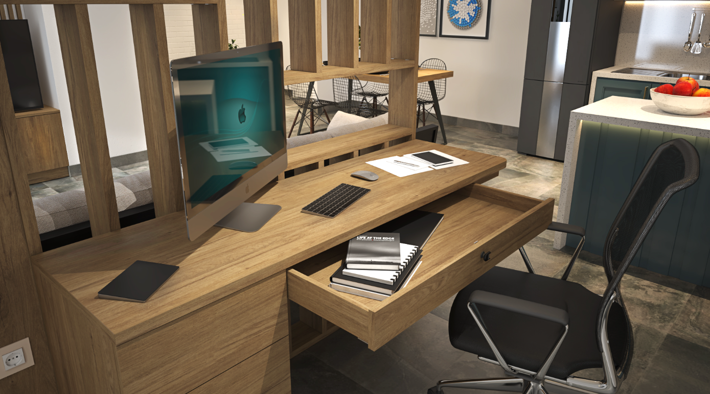 Room Divider Unit with Built-in Desk and Storage Cabinet: