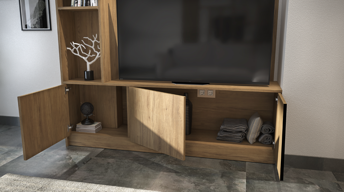 Dive into the natural elegance of the Collection Celia, where the robust charm of Roble Denver color takes center stage. This collection is a masterful amalgamation of entertainment and work essentials, designed to enrich your home with versatility and style. The thoughtful integration of decorative and functional elements in this set makes it a perfect choice for those seeking a seamless blend of work and leisure environments.
