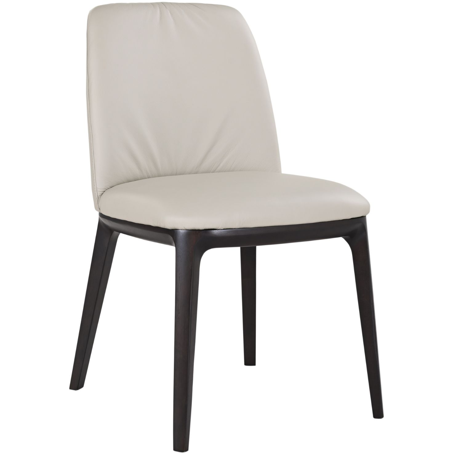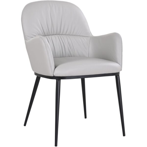 The Clario Grey Dining Chair is wrapped in full leather upholstery, providing a rich, tactile texture that develops character over time. The sophisticated light grey palette offers a versatile, contemporary aesthetic that seamlessly integrates into minimalist, transitional, or high-end modern interiors.
