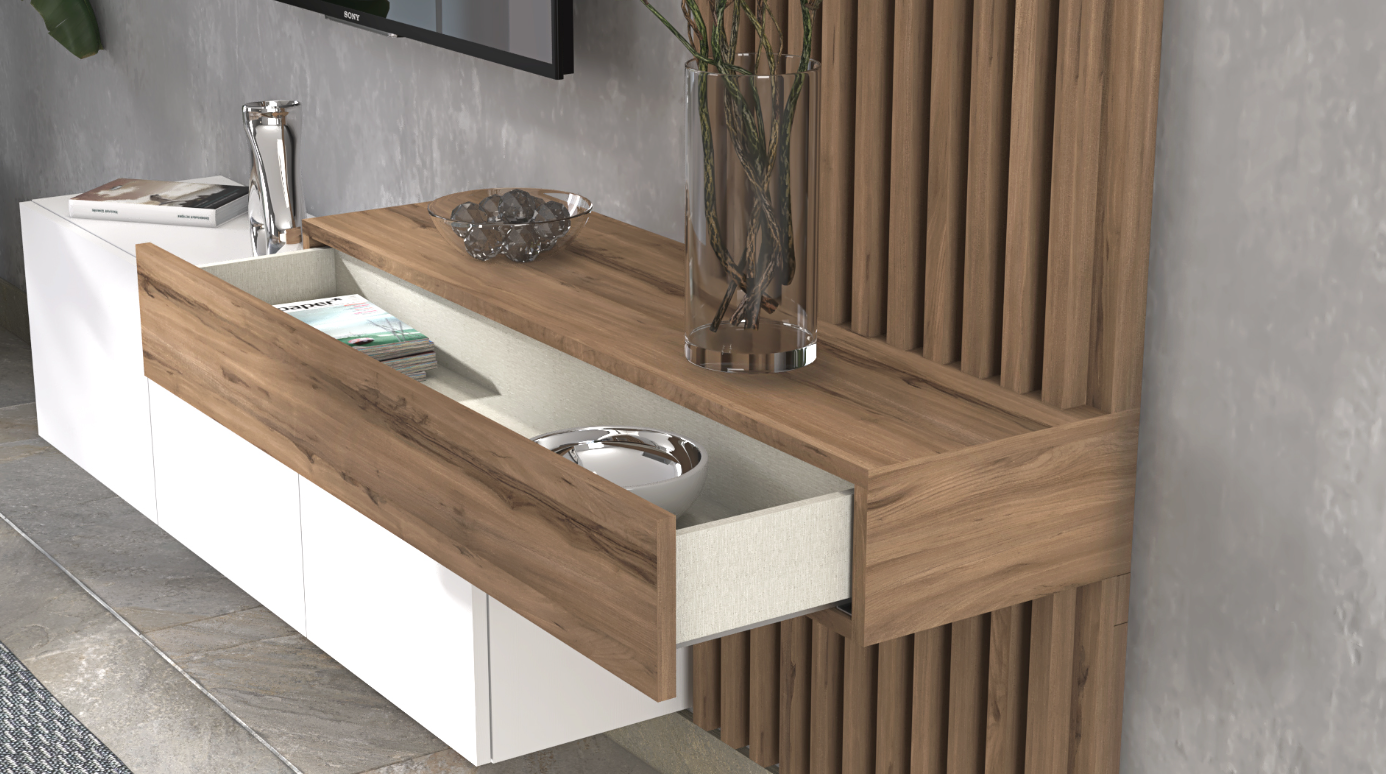Wall Panels and Top Unit with Storage Drawer in Olmo Sabi: