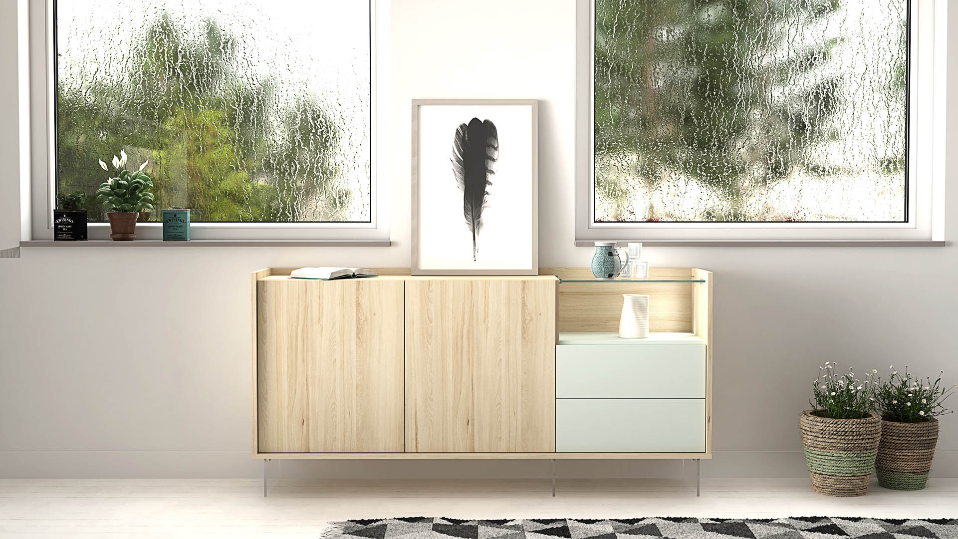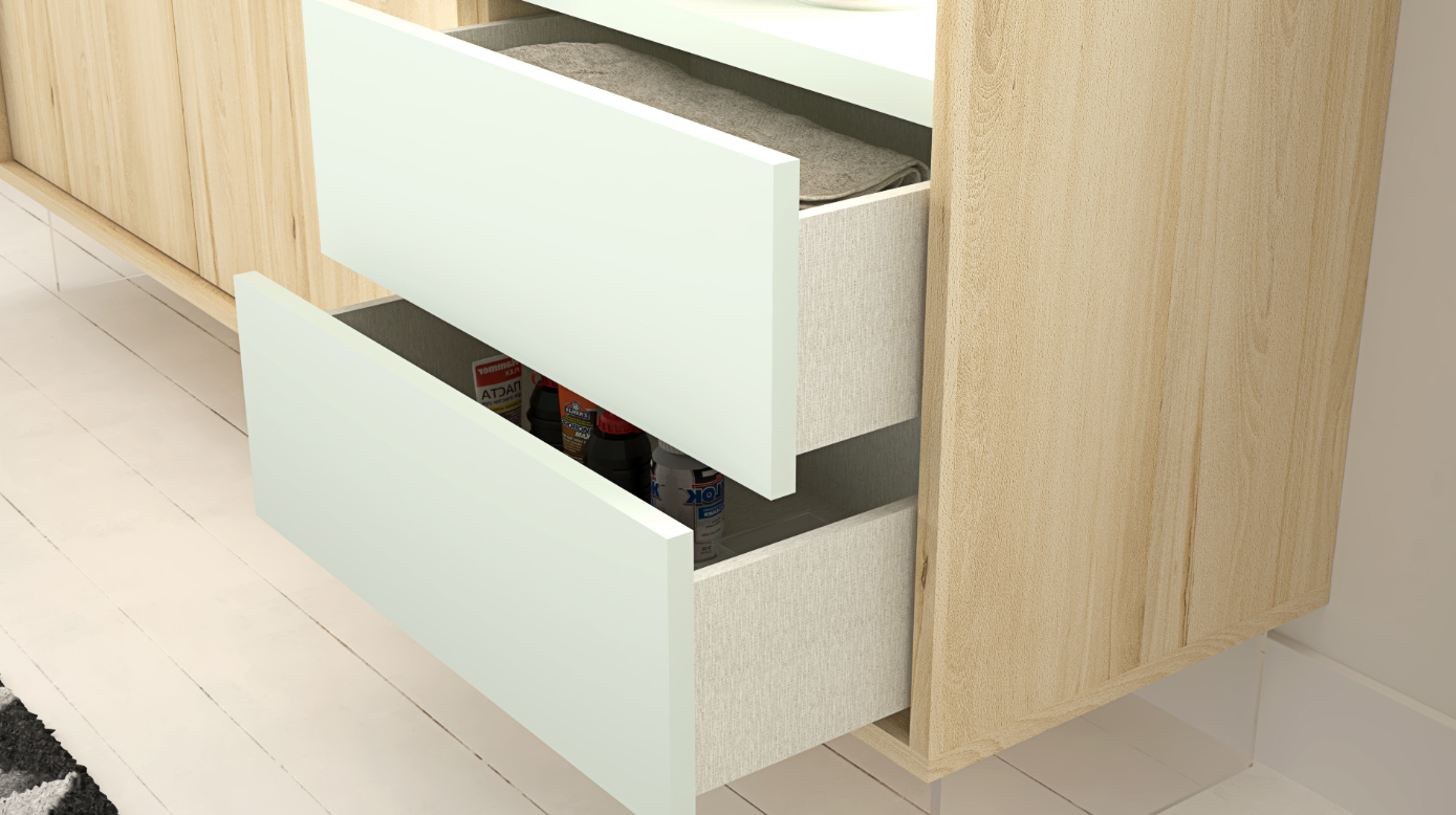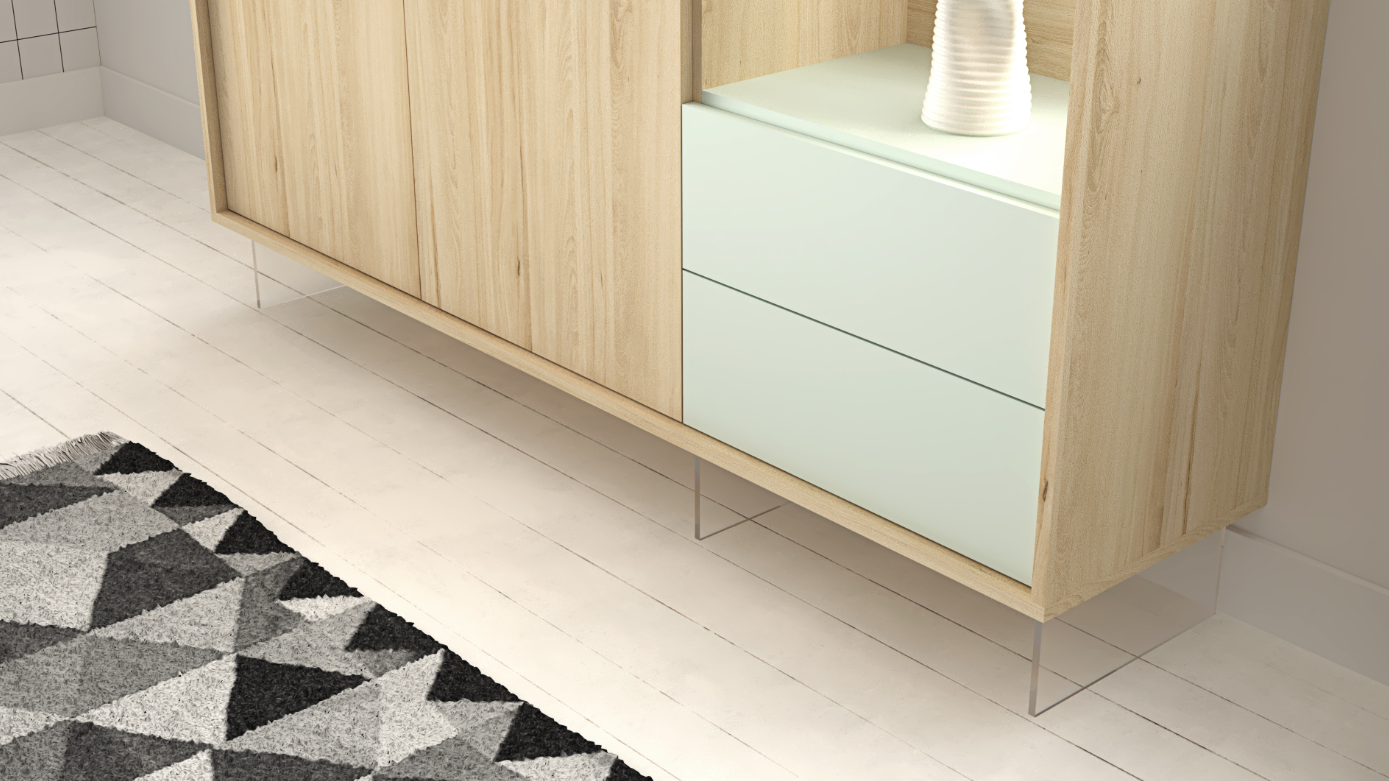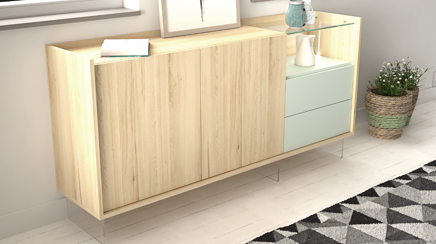 Stylish Acrylic Legs: Elevating the credenza, the acrylic legs not only provide sturdy support but also add a modern flair to the piece, ensuring it complements any decor style with ease.