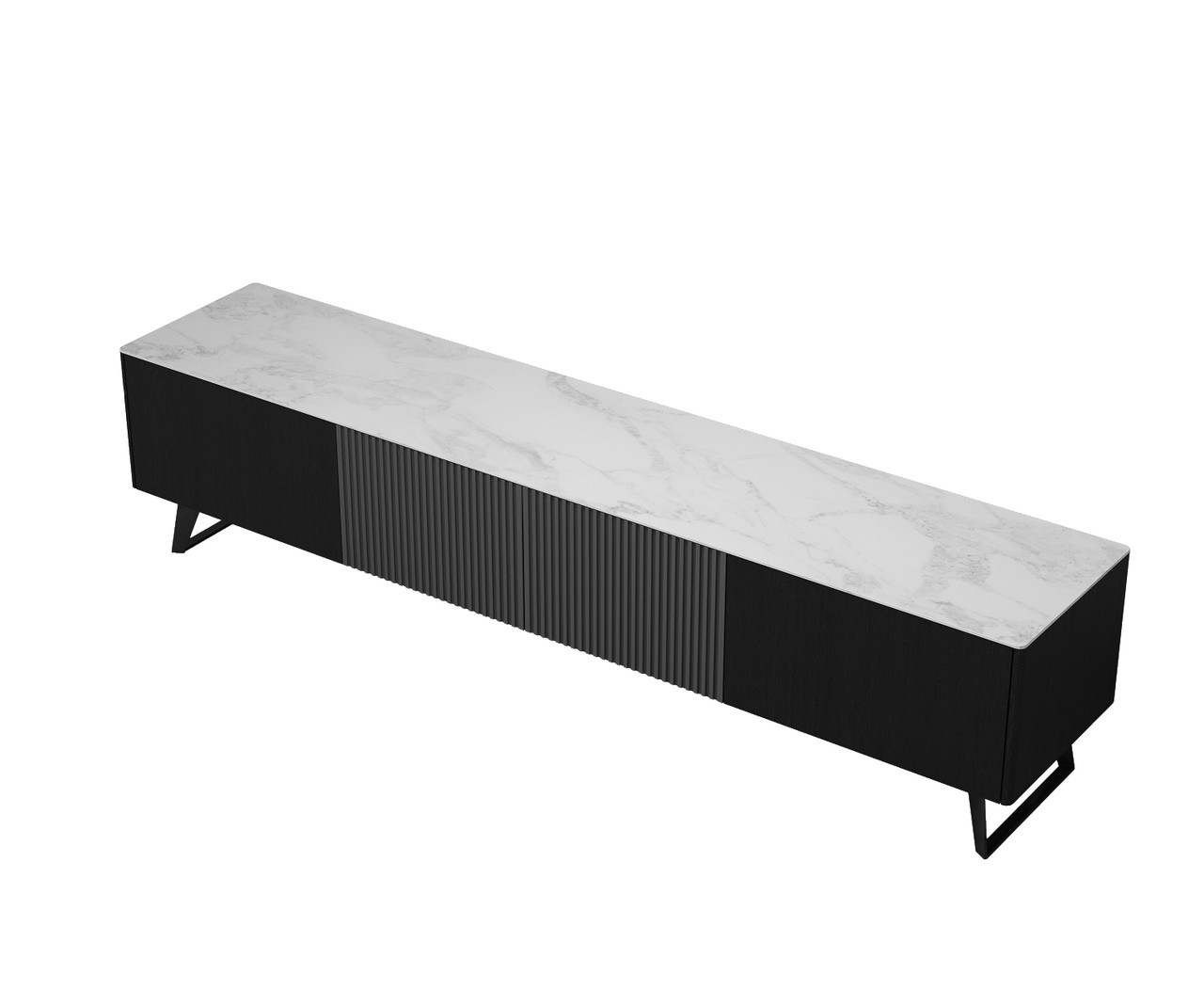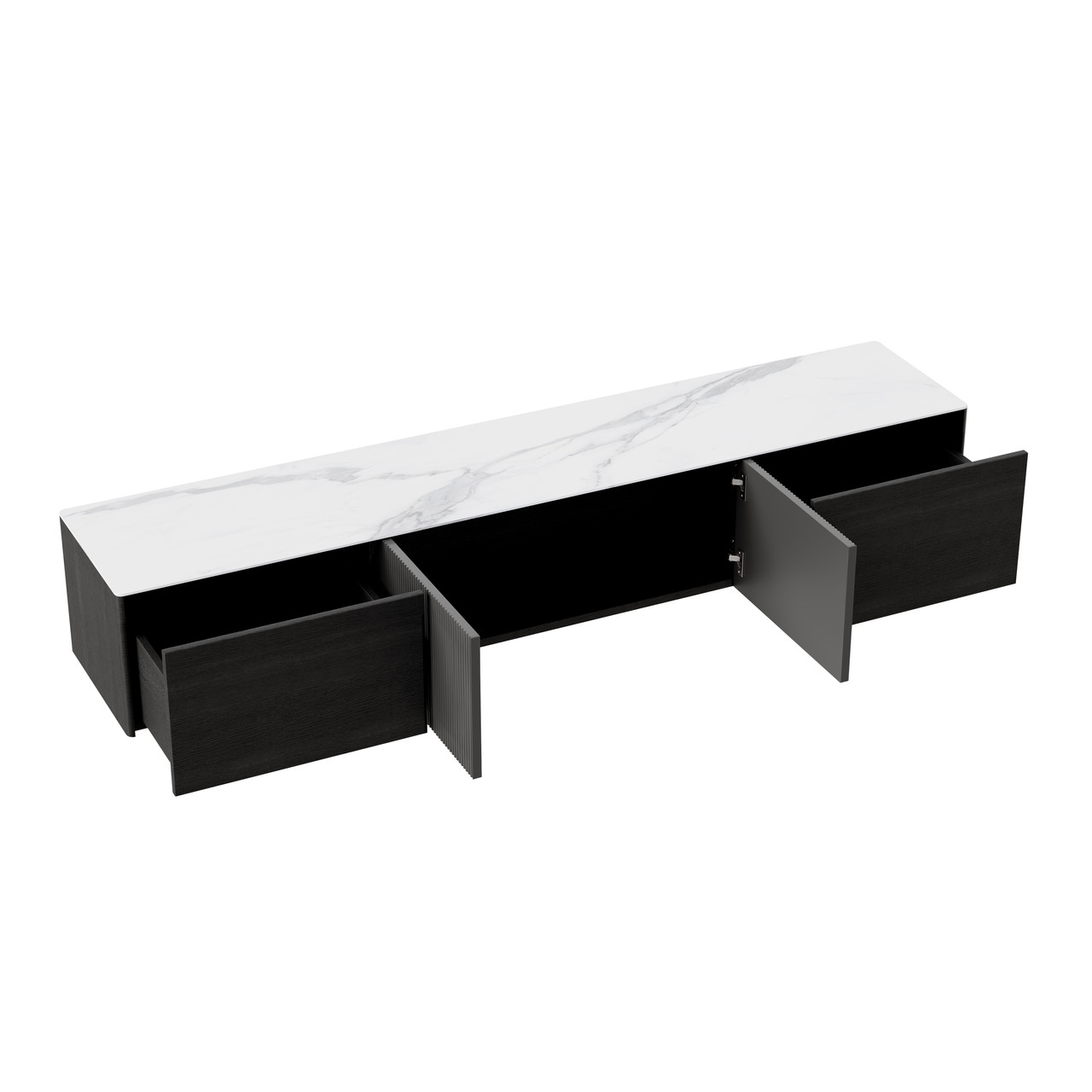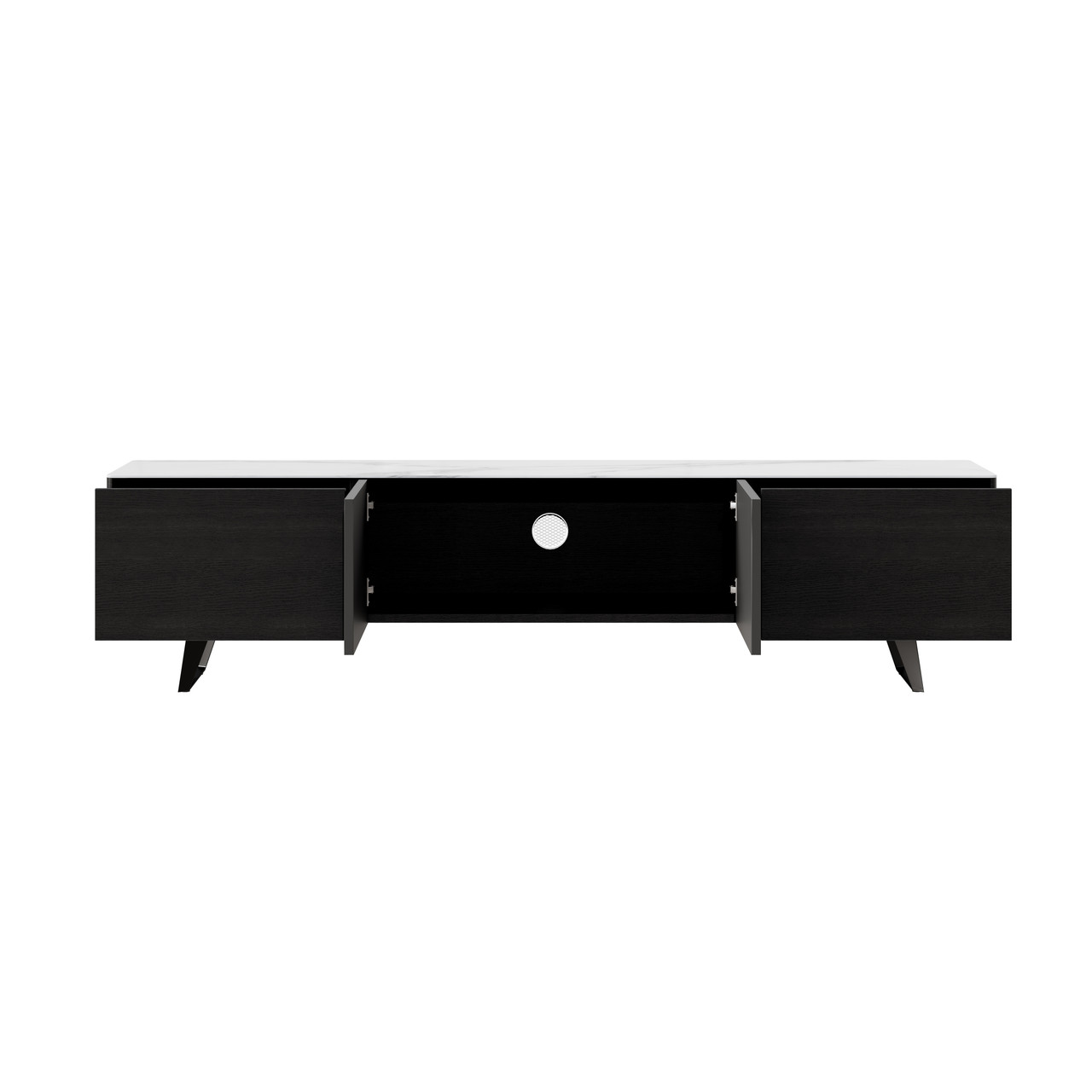 Jackson Carrera Style Top TV stand With Storage, white Top with Black Frame and Matte Metal Base