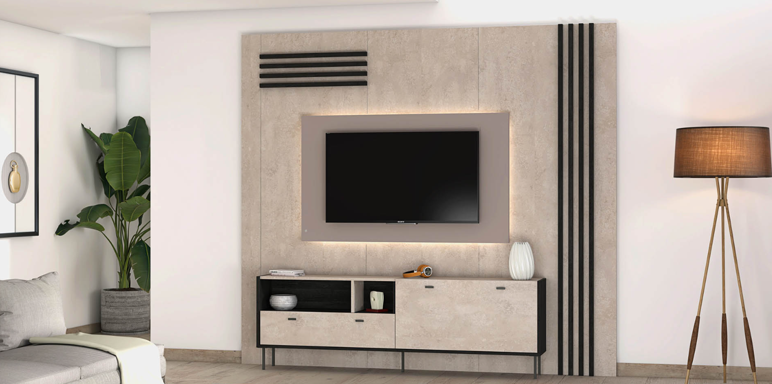 - Crafted in Luna Nueva, this panel serves as a stunning backdrop for the TV stand, adding depth and elegance to the design.