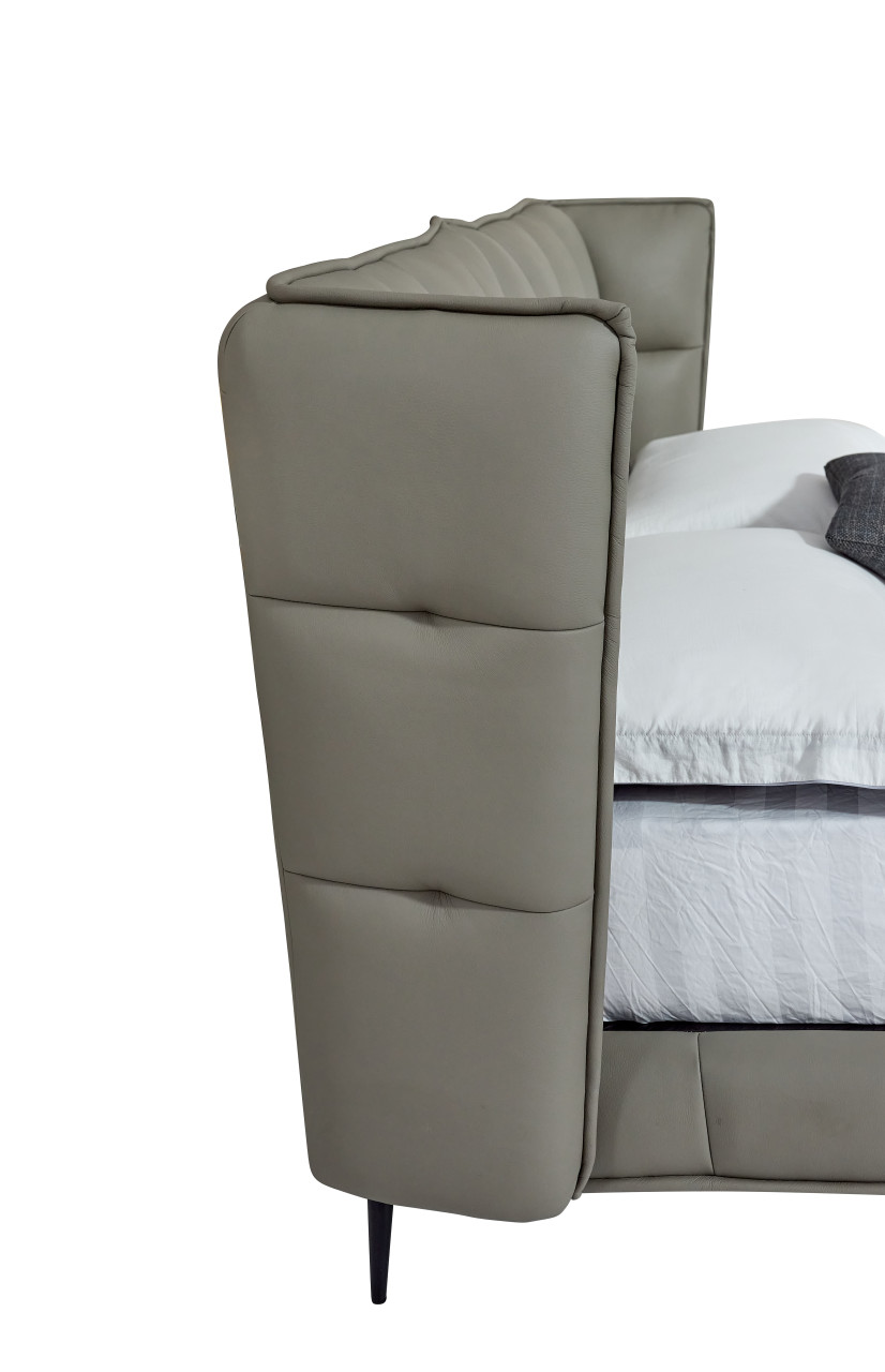 Laura Leather Bed in full leather Sage Grey XM-01