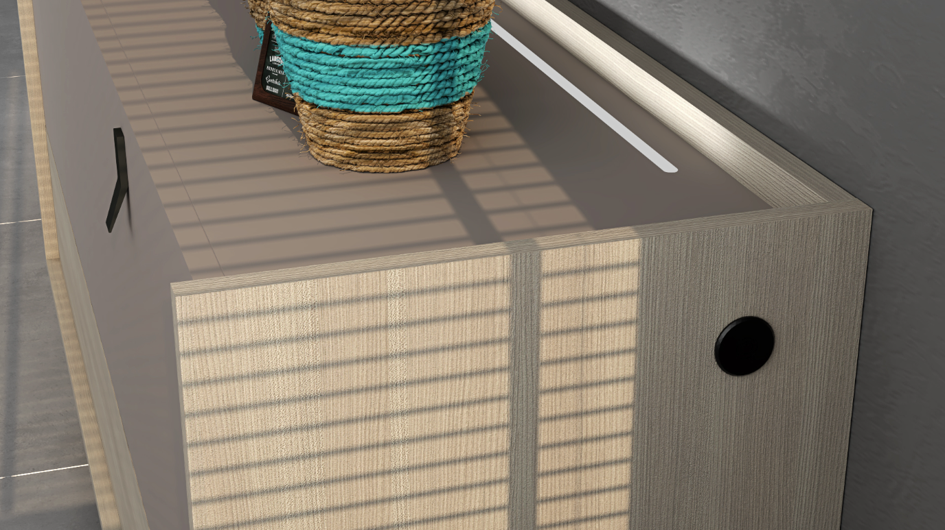 Sophisticated Design: The Lino Collection’s use of Olmo for the body and bottom drawers, paired with Mineral Grey doors, creates a visually appealing contrast that captures the eye. This color palette, combined with the functionality of each piece, makes the collection a versatile choice for various home decor styles.
