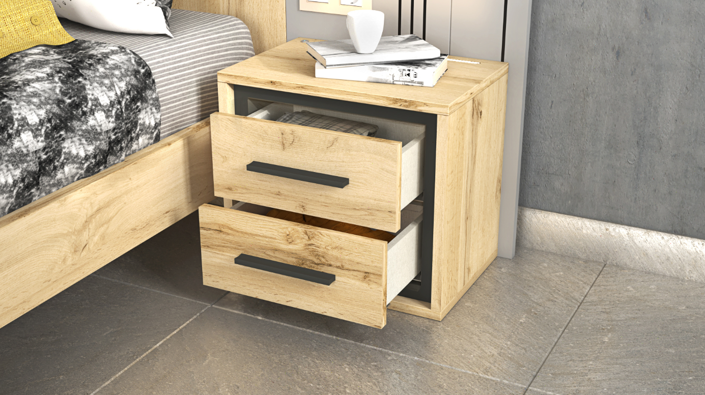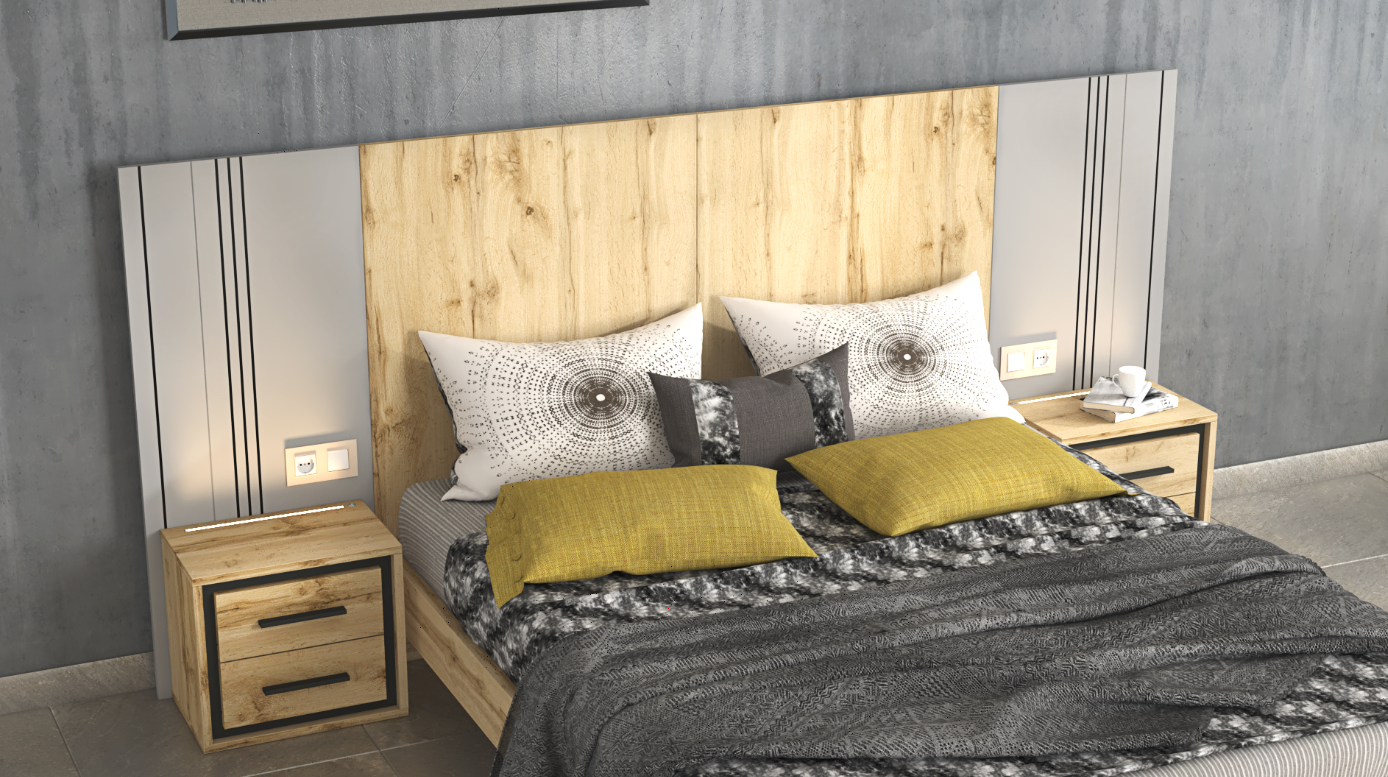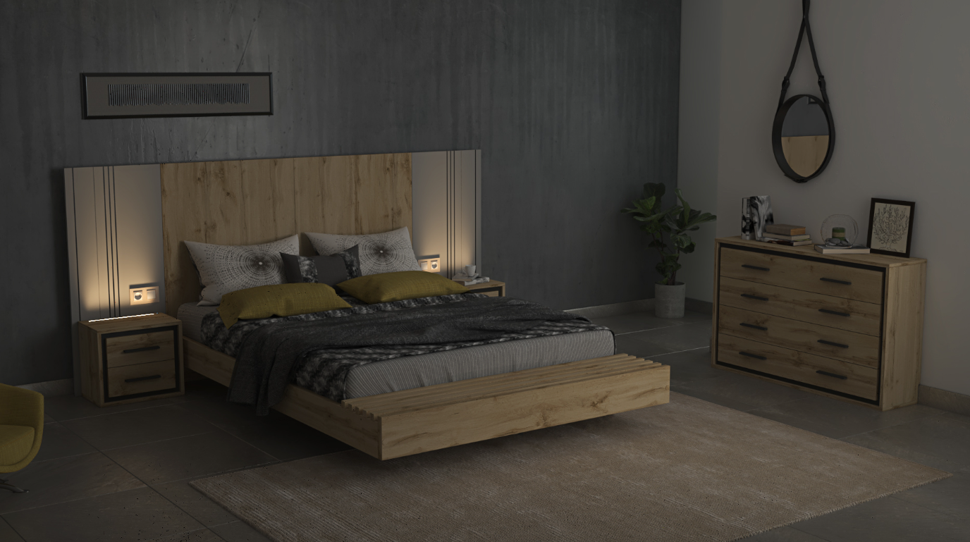 The Marisol Bedroom Collection by Modekraft, available through Euro Elite Furniture, blends modern European design with warm natural finishes and integrated lighting. Crafted in rich Roble Hercules with accents of Gris Claro, Gris Claro Ranurado, and Pizarra, this collection creates a sophisticated and inviting bedroom atmosphere.
