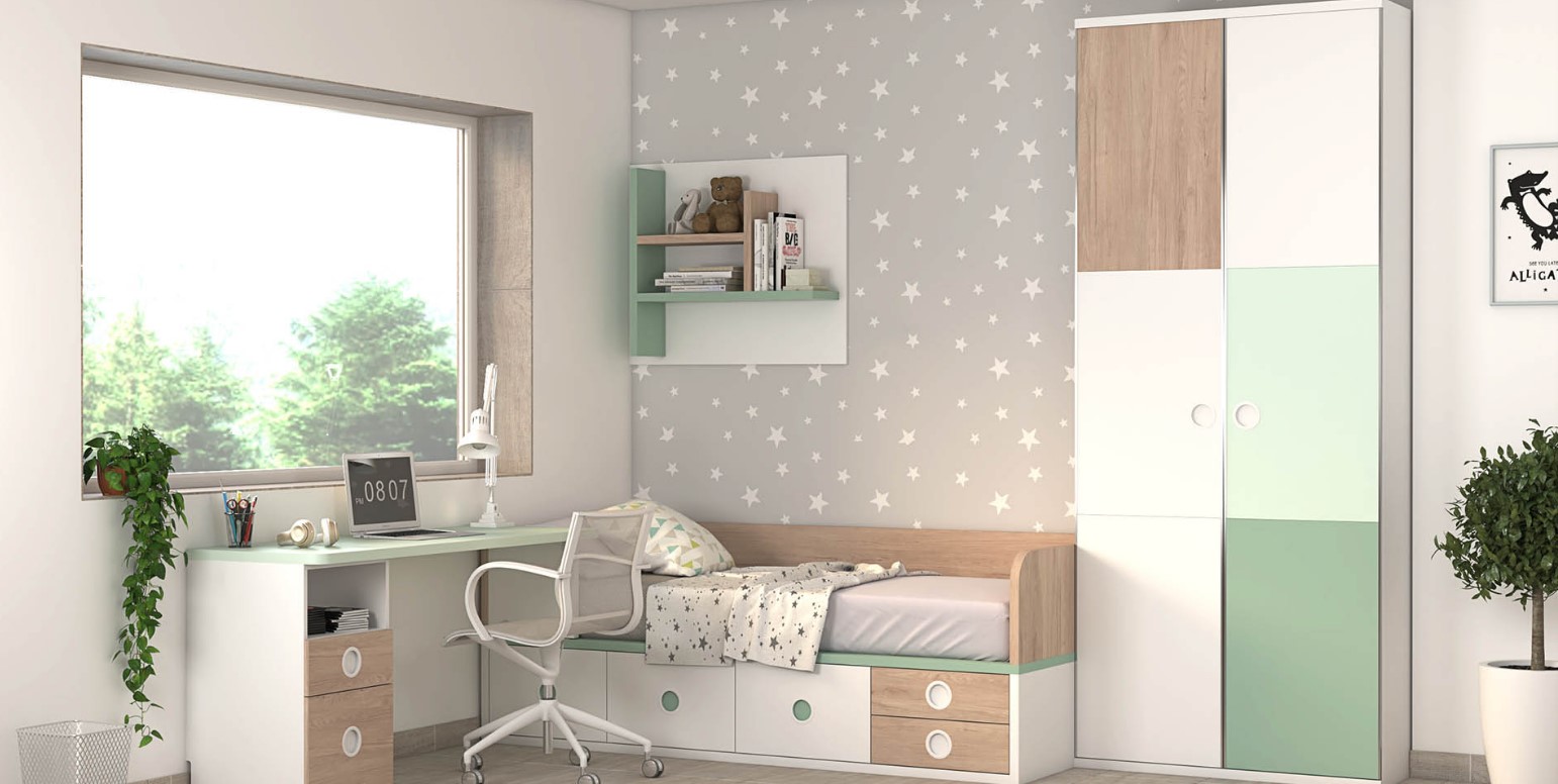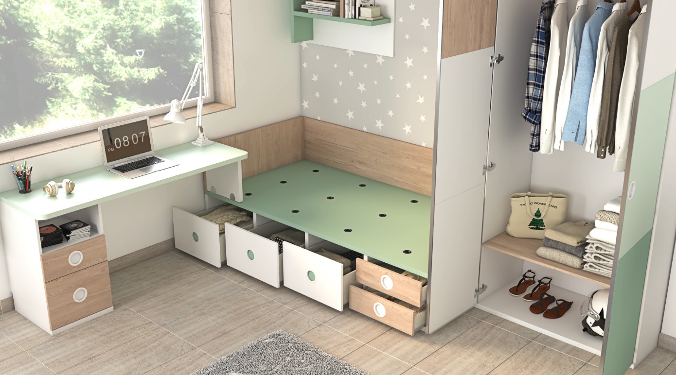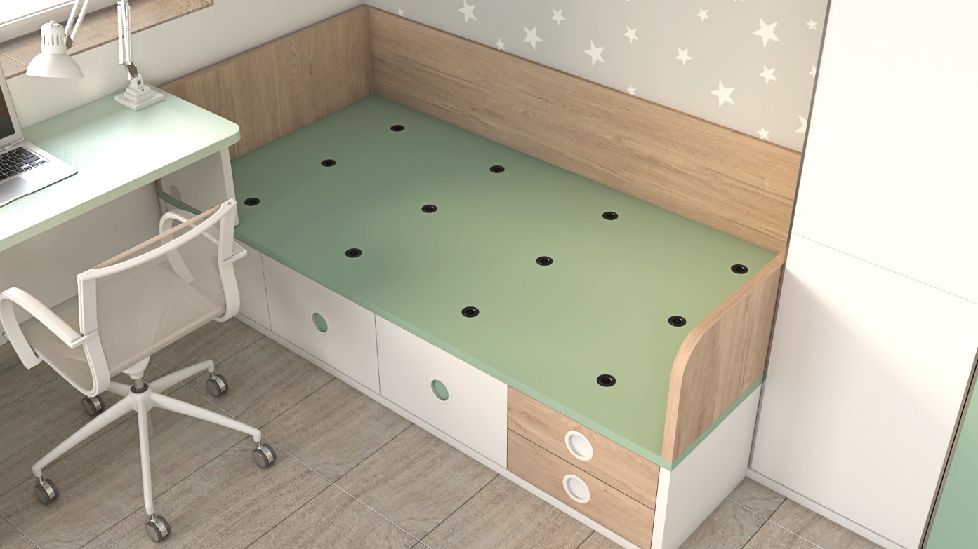 Menorca Mágica: A Whisper of Island Serenity Introducing the Menorca Mágica collection, where the crispness of Blanco meets the natural warmth of Roble Aurora and the tranquil shades of Verde Nube and Verde Talco. This collection is a homage to the serene beauty of Menorca, designed to infuse your space with a sense of calm and understated elegance. Menorca Mágica combines thoughtful storage solutions with a soothing color palette, creating a sanctuary of peace and organization. Day Bed with Ample Storage: The heart of the Menorca Mágica collection, the day bed, is a masterpiece of design and functionality. Featuring five spacious storage drawers, it offers an elegant solution for keeping belongings organized and within easy reach, making the most of every square inch while providing a cozy nook for relaxation and dreams. The Menorca Mágica collection invites you to transform your space into a haven of tranquility and understated elegance. Inspired by the peaceful landscapes and light of Menorca, each piece in the collection is designed with an eye for detail and a deep understanding of the need for balance between form and function. With its soothing colors and smart design features, the Menorca Mágica collection turns any room into a serene retreat, where every element is crafted to support a lifestyle of peace, creativity, and order. Let Menorca Mágica Inspire Your Home Embrace the Menorca Mágica collection and let it be the backdrop to a life lived with serenity and style. Here, where design meets functionality, your space becomes a reflection of the tranquil and magical essence of Menorca, offering a sanctuary where every day is an opportunity to live beautifully and dream peacefully.