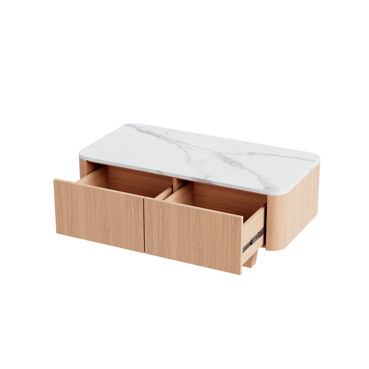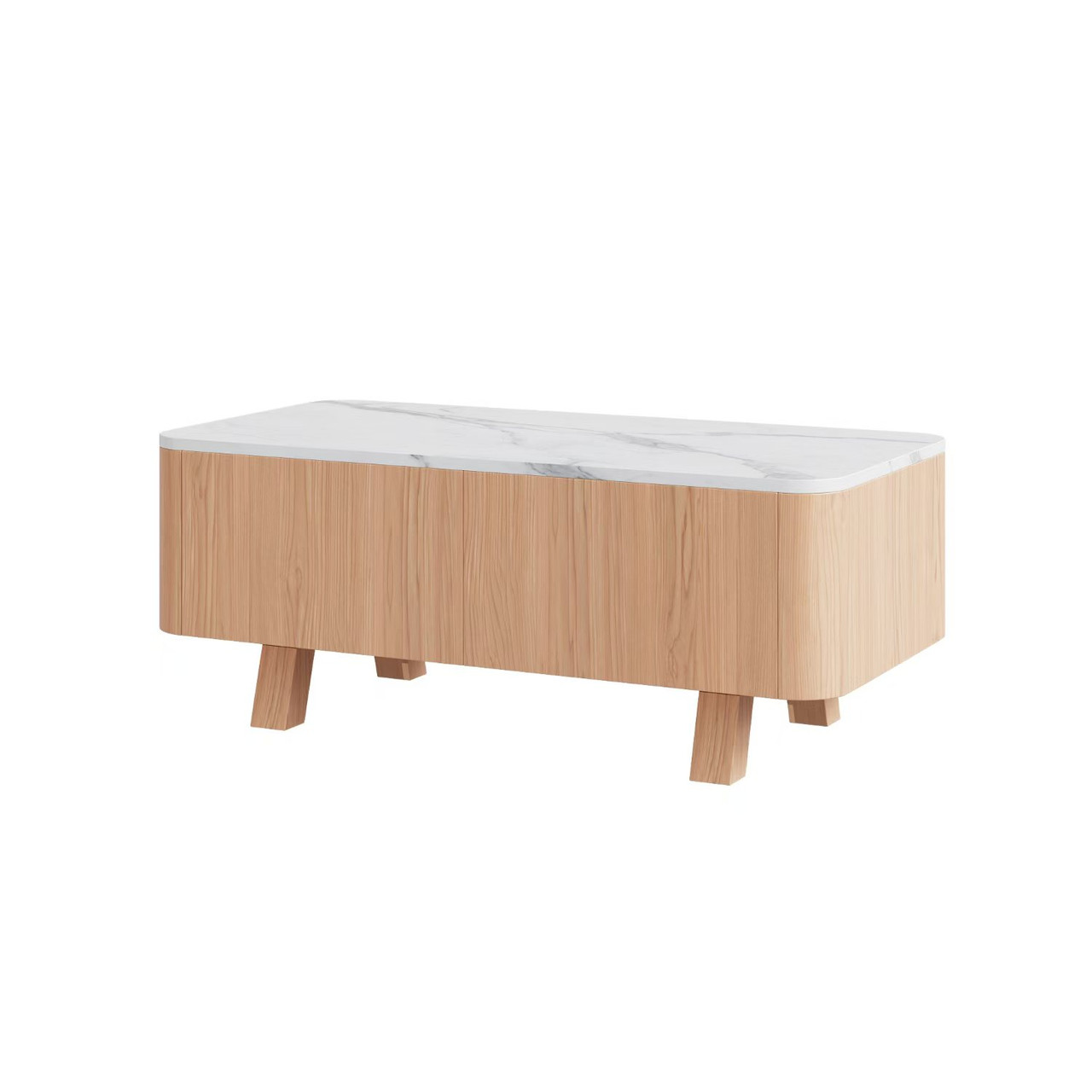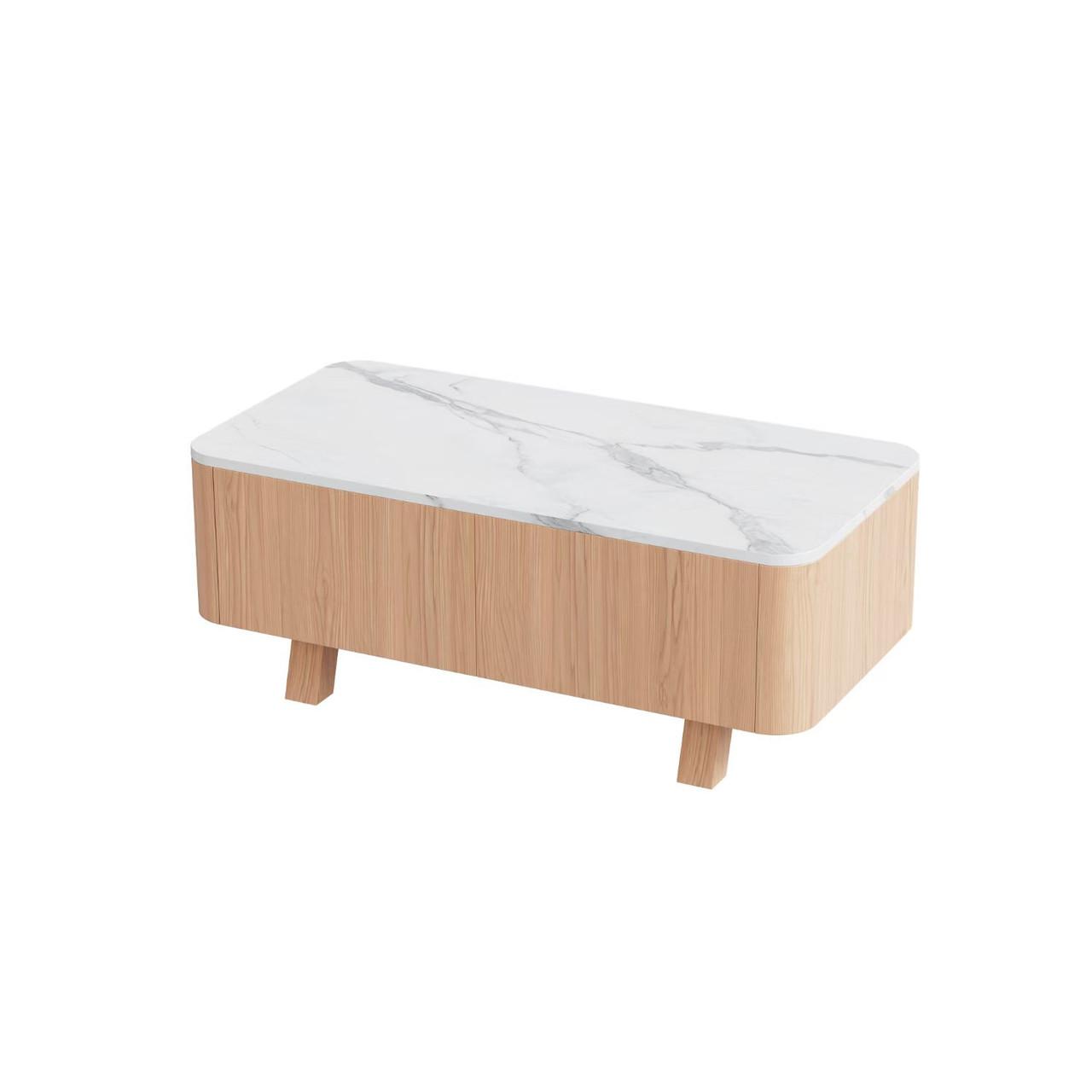 Coffee Table with White Marble Top with Oak Veneer and Solid Rubber Wood Frame