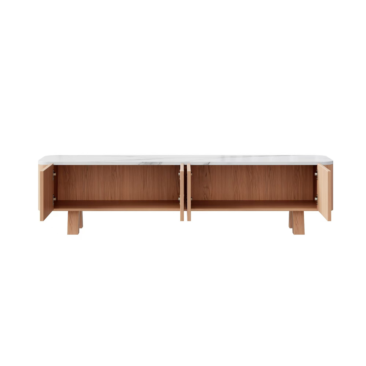 Nordic TV Stand with White Marble Top with Oak Veneer and Solid Rubber Wood Frame