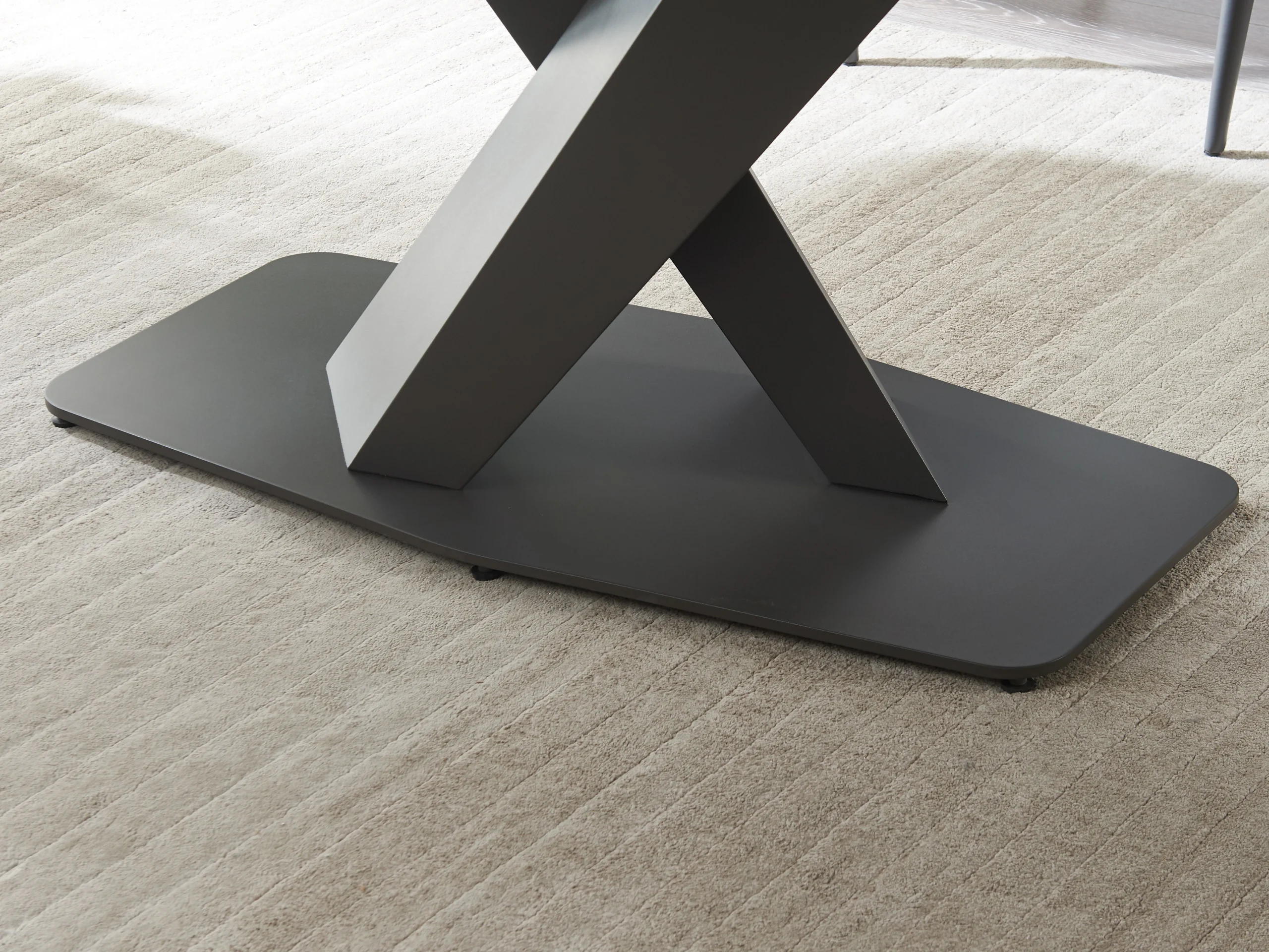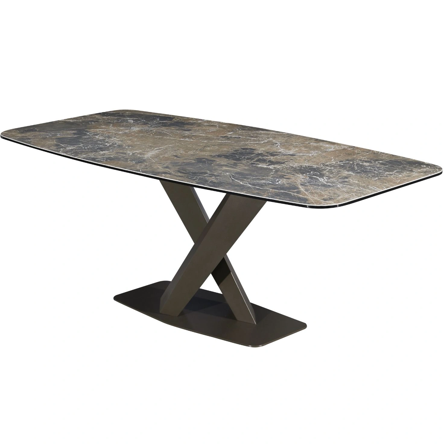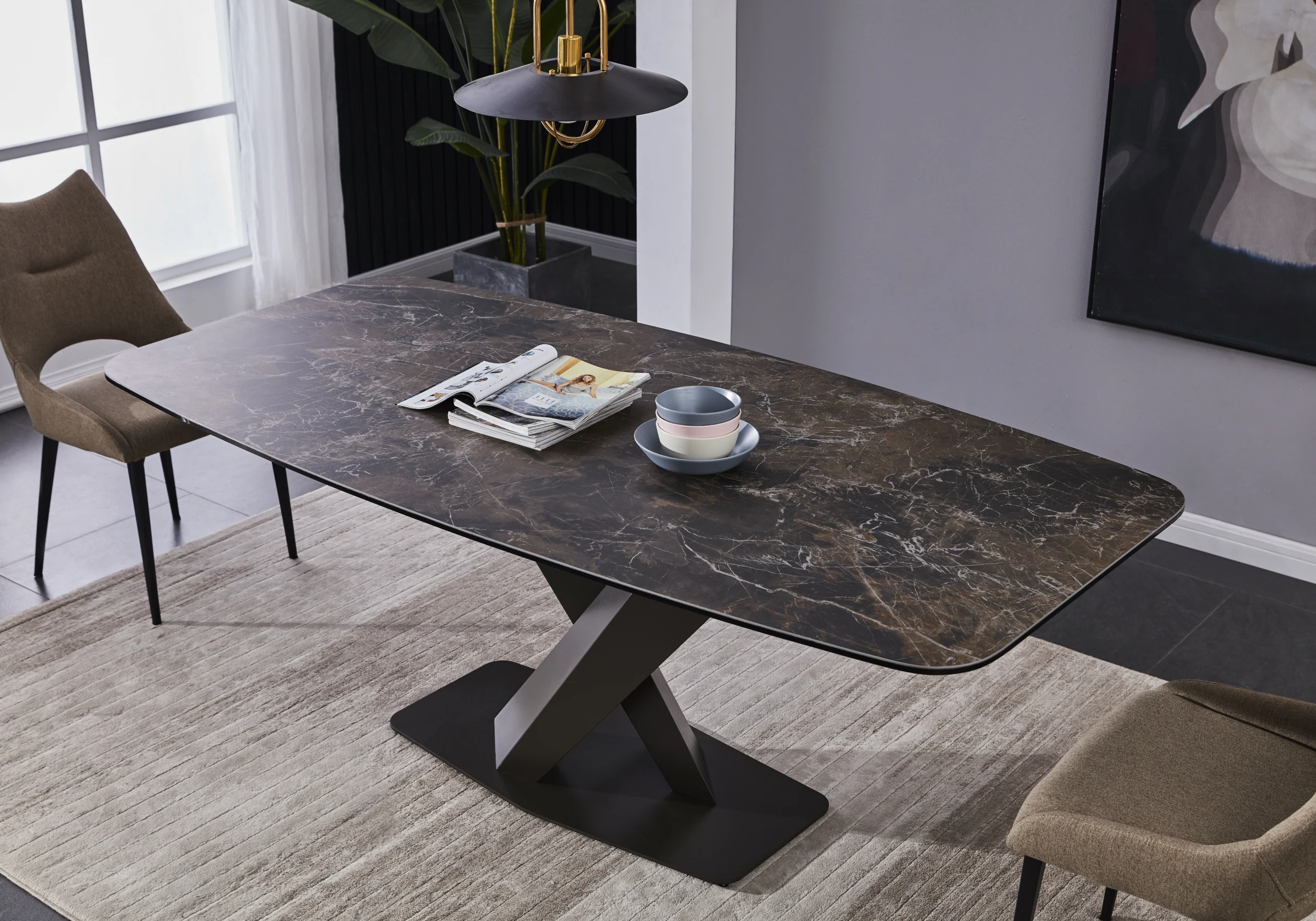 Ultra-Modern Foundation: The table is anchored by an eye-catching architectural base. Finished in a luxurious moka powder coating, the base provides a warm, contemporary contrast to the sleek ceramic top.