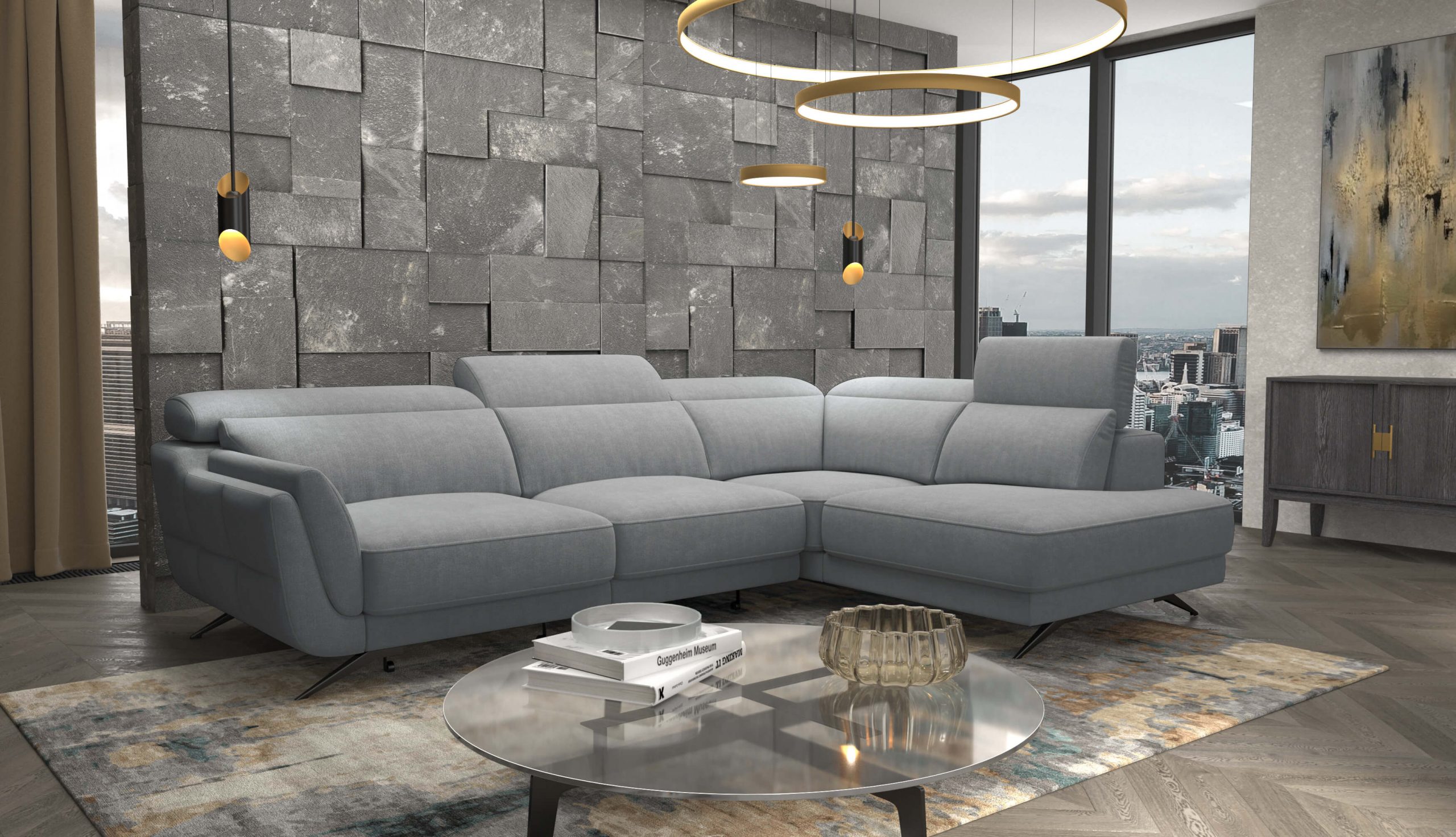 Upholstered in a Medium Grey easy-to-clean fabric, Ronda is designed for modern living. The seats are enhanced with high-density foam for lasting comfort, while adjustable headrests and sliding seats allow you to personalize your seating position for optimal relaxation.