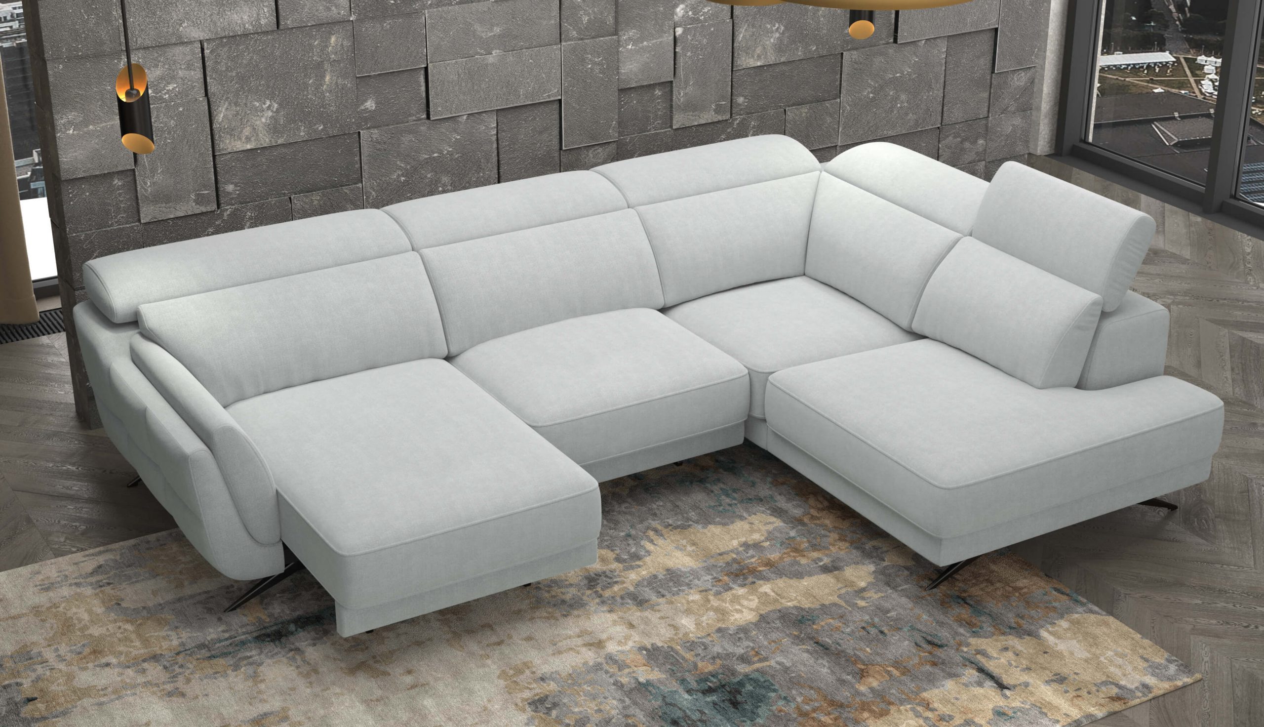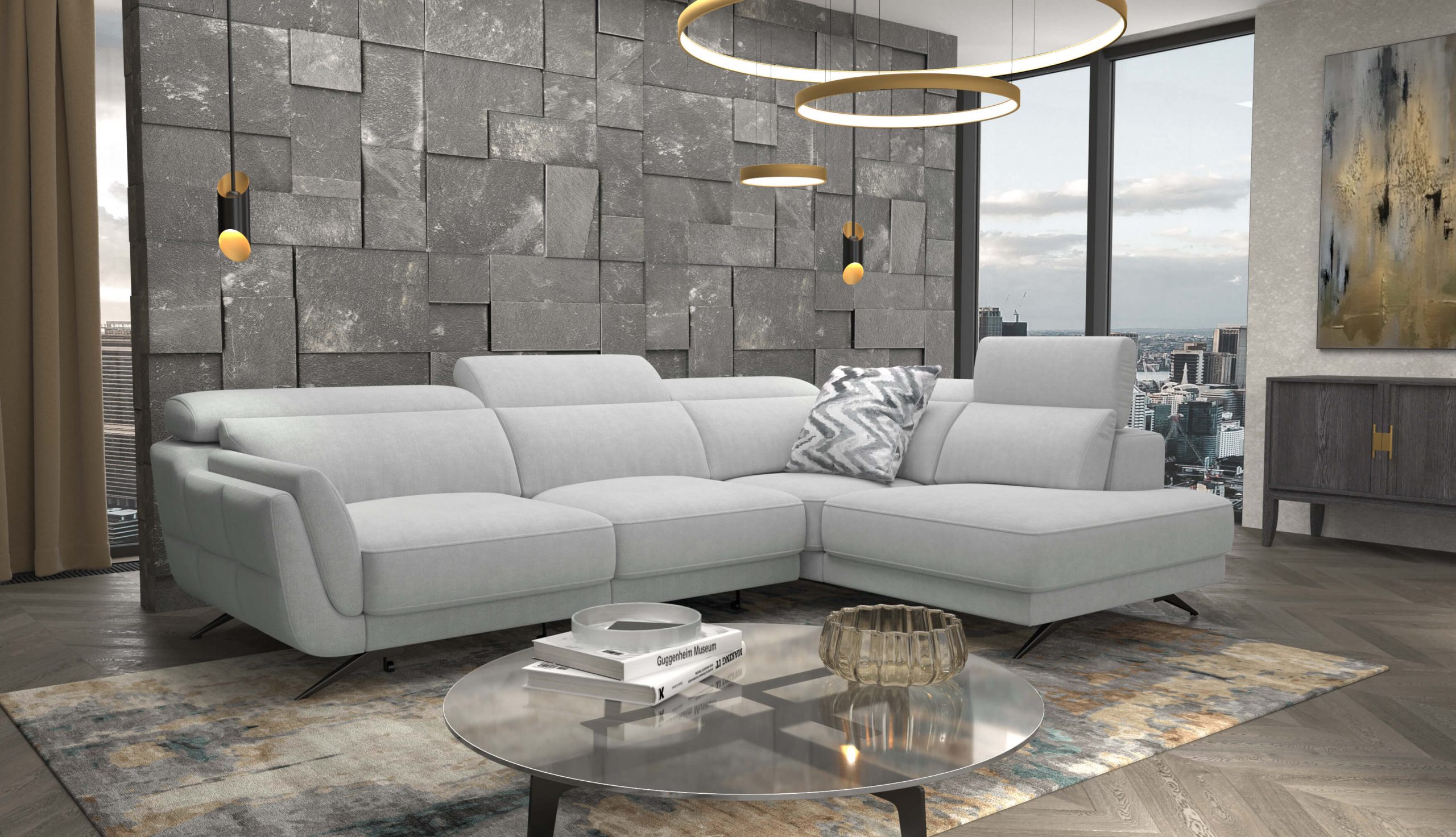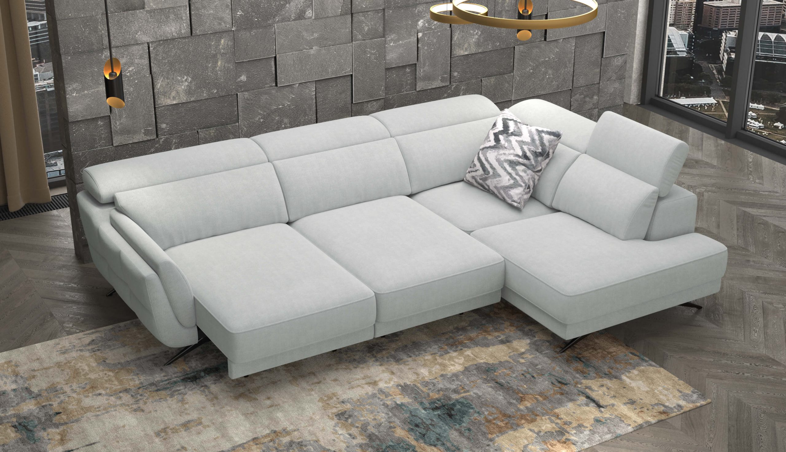 Upholstered in a Light Grey easy-to-clean fabric, Ronda is designed for modern living. The seats are enhanced with high-density foam for lasting comfort, while adjustable headrests and sliding seats allow you to personalize your seating position for optimal relaxation.