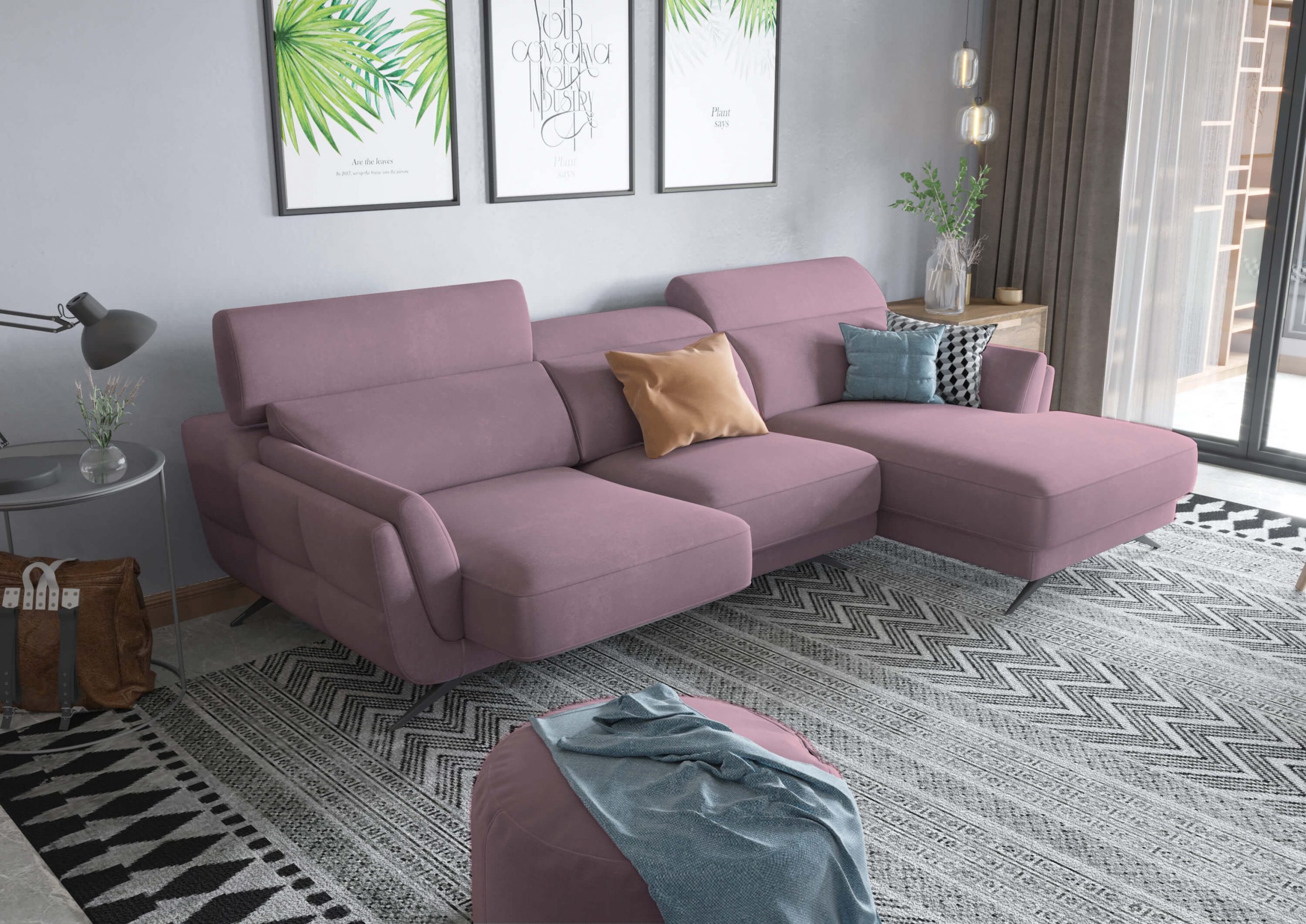 Ronda Pink Sectional Right Facing Chaise