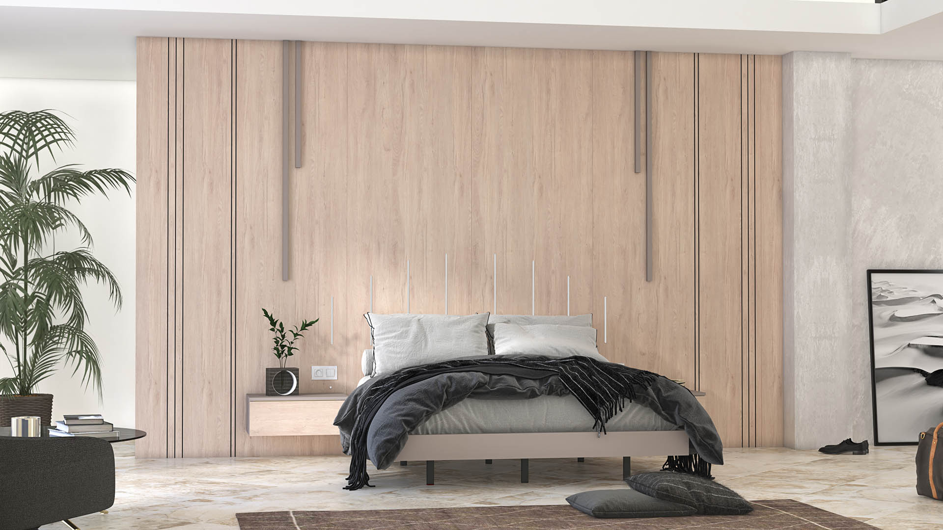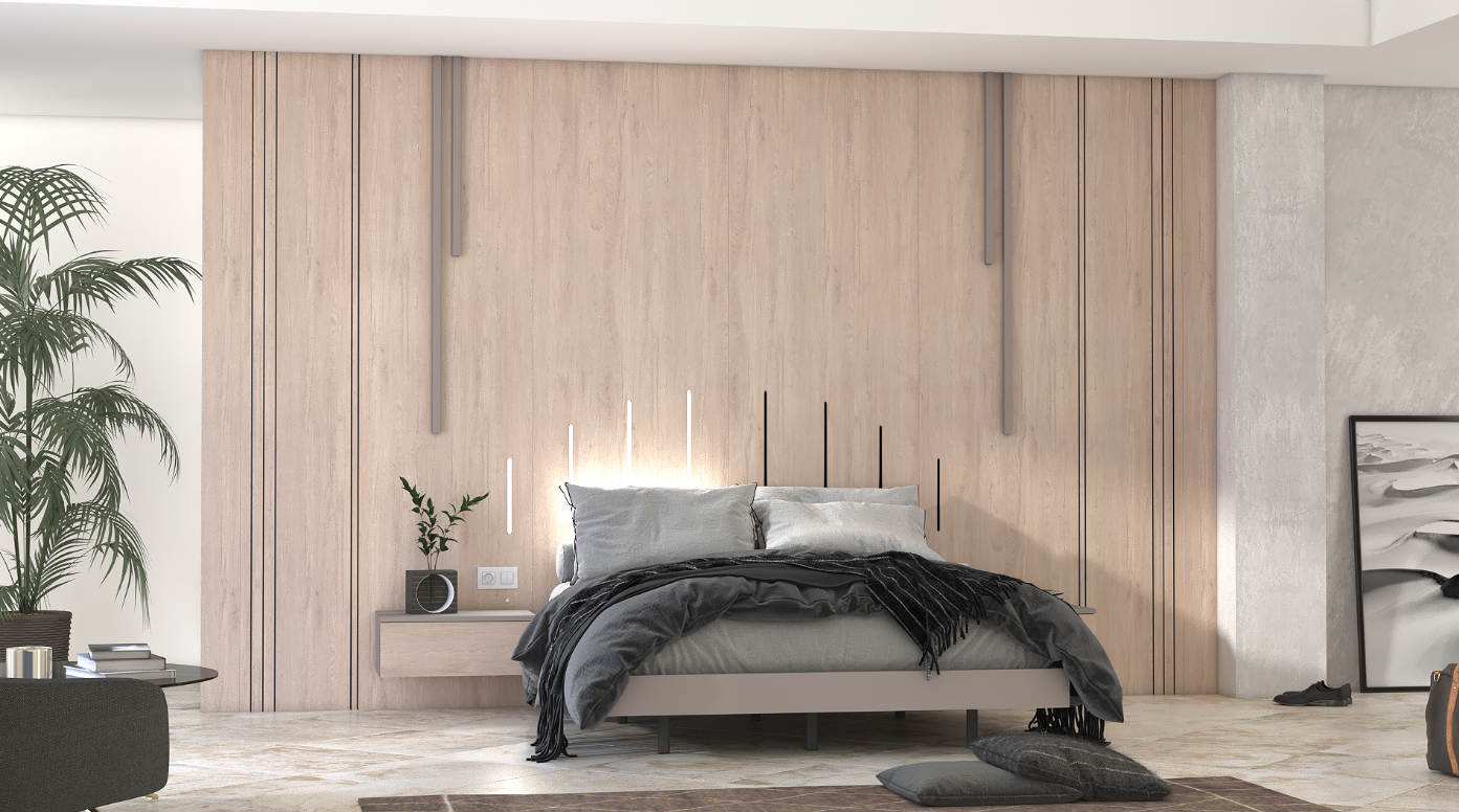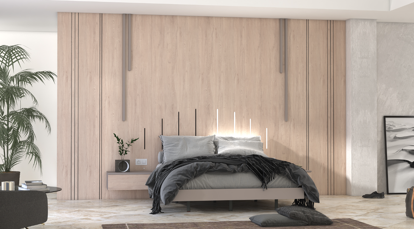 The Siesta Bedroom Collection by Modekraft, available through Euro Elite Furniture, is a modern wall-bed system designed to create a calm, elegant, and visually striking bedroom environment. Finished in Roble Aurora, Mineral Grey, and Roble Aurora Ranurado, this collection blends warm wood textures with contemporary contrast.