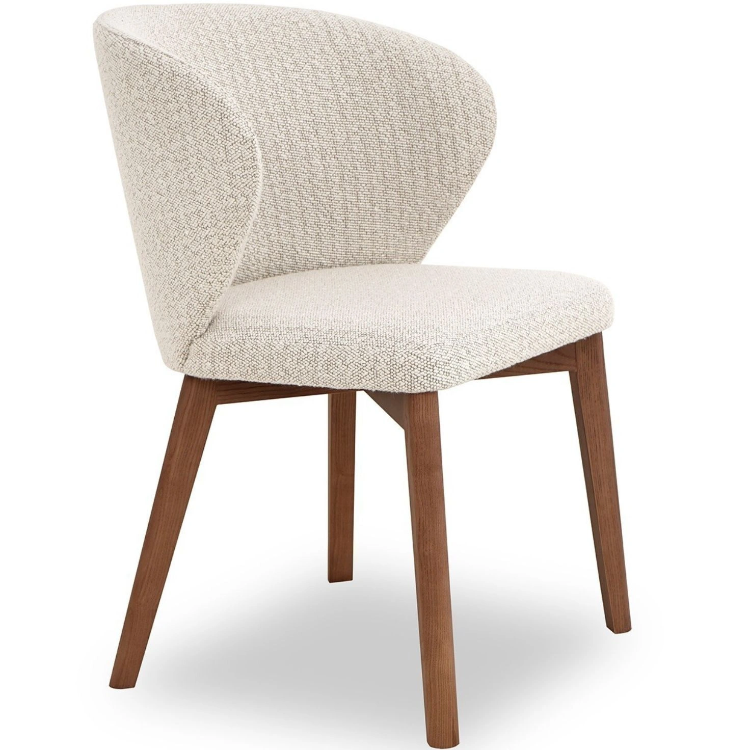 The Silvaire is more than just a seat; it’s a statement. Featuring a premium white fabric upholstered back and seat, it offers a plush, supportive experience that invites guests to linger over long dinners. The clean lines of the upholstery are beautifully contrasted by solid wood legs finished in a rich walnut. This combination provides a natural warmth and a rock-solid foundation that ensures years of durability.