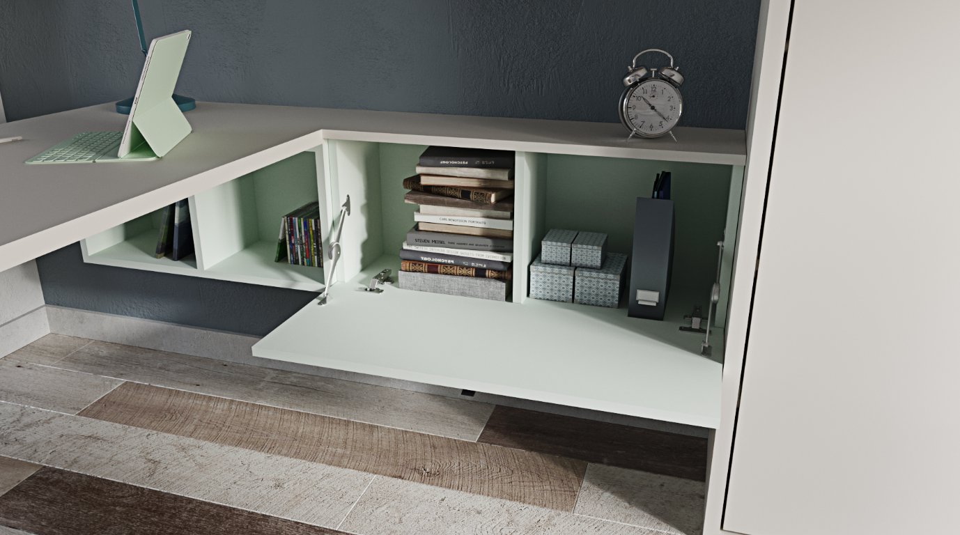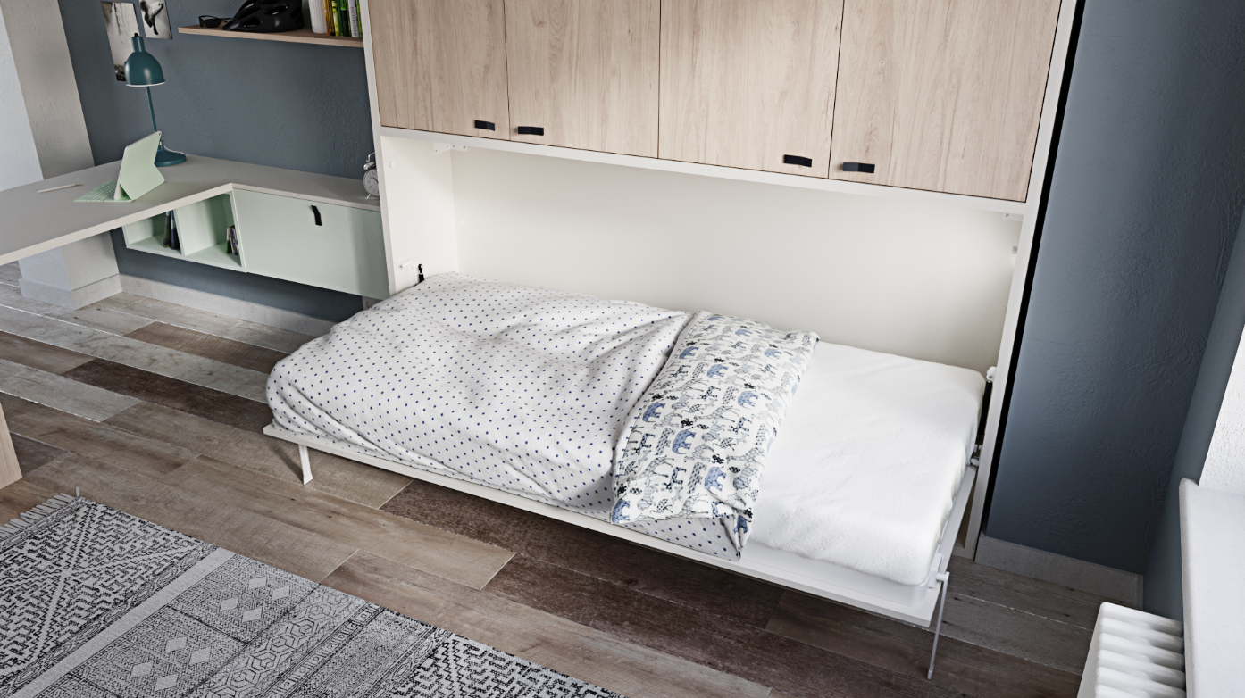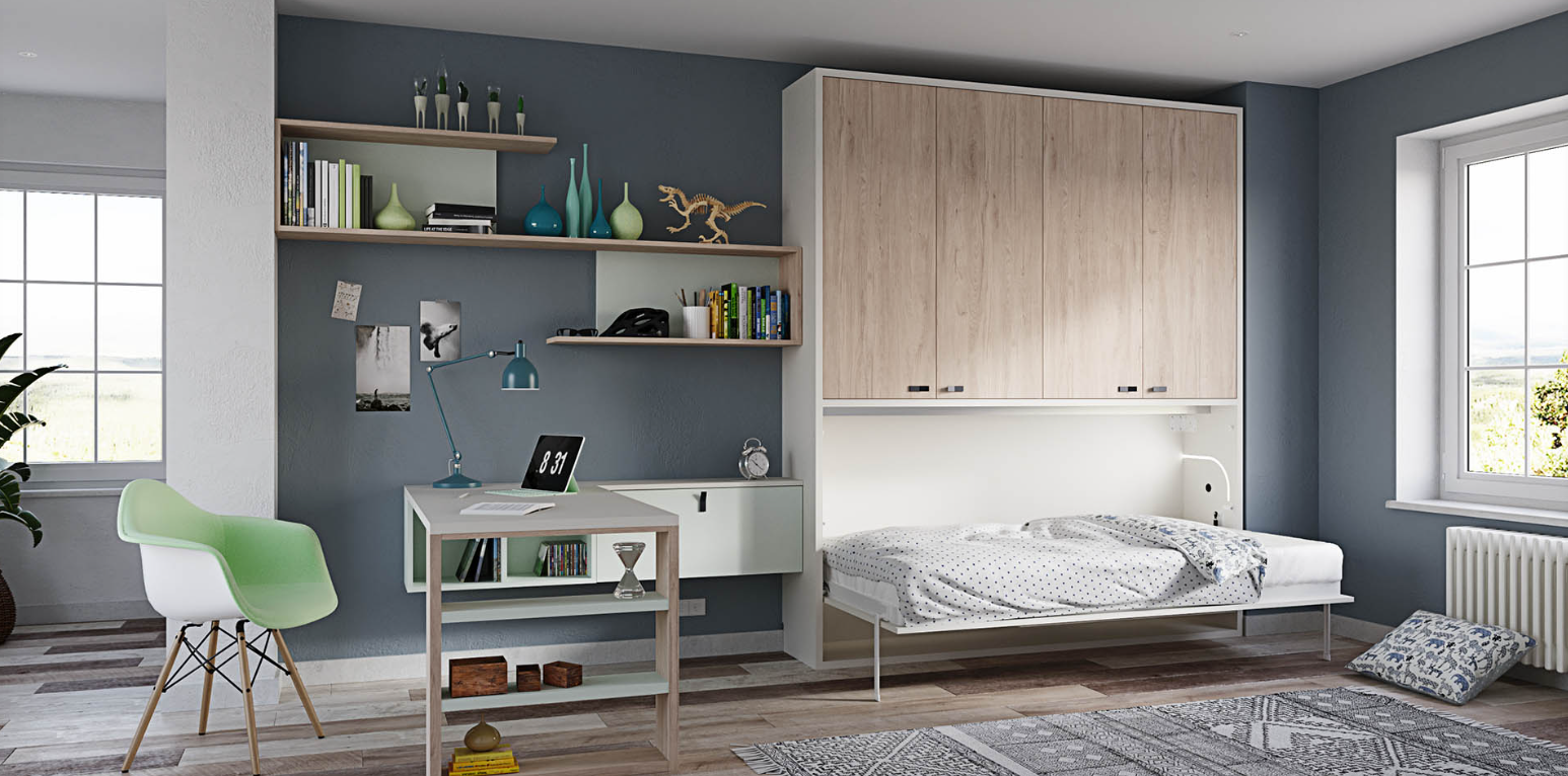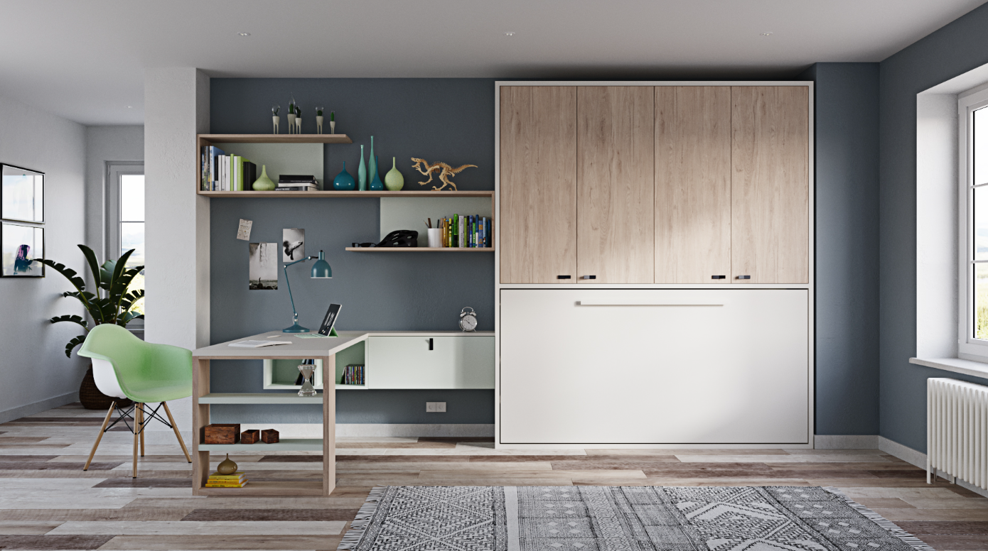 Breaking away from traditional furniture layouts, the Tarragona Tide Collection embraces the concept of multifunctionality and open, diaphanous spaces. It caters to the evolving needs of its users, from the playful days of childhood to the demanding requirements of teenage years. The collection’s innovative Murphy bed, combined with the versatile desk, wardrobe, and storage solutions, maximizes the usability of any room without compromising on style or comfort. Inspired by the innovative spirit of Tarragona’s architectural heritage, this collection offers a modern solution for today’s multifaceted lifestyle, making it an ideal choice for those looking to enhance their living space with functionality, elegance, and a touch of Mediterranean flair.