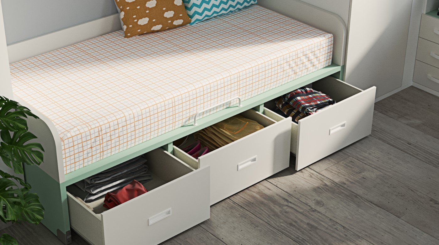Day Bed with Unidirectional Wheels: Central to this collection is the day bed, reimagined with the practicality of unidirectional wheels for effortless mobility. This feature transforms the bed into a dynamic piece of furniture, easily moved to suit the changing needs of your day or to simplify tasks like making the bed. With three storage drawers beneath, it combines convenience with clean, spacious living.