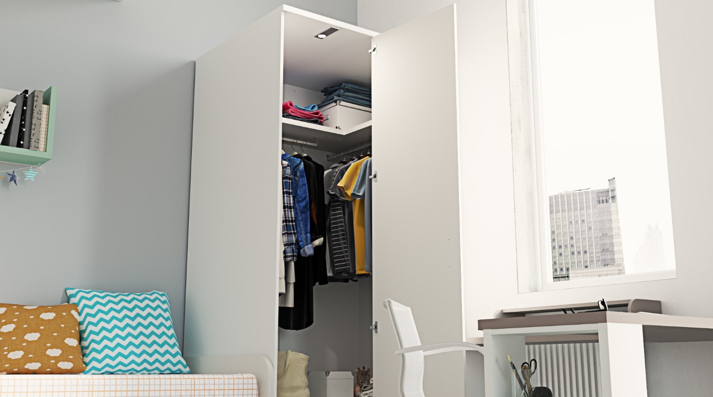 Corner Wardrobe with Intelligent Design: The corner wardrobe is a marvel of space optimization, designed to nestle perfectly into any corner. Its single door opens to reveal a surprisingly vast interior, complete with an automatic LED light for ease of use. This compact yet capacious wardrobe is a game-changer for storage, illuminating your selections while preserving valuable room space for other uses.