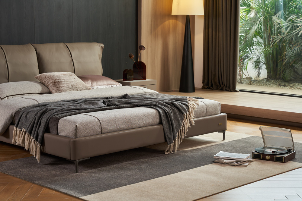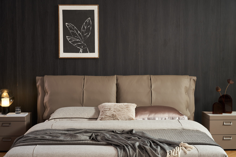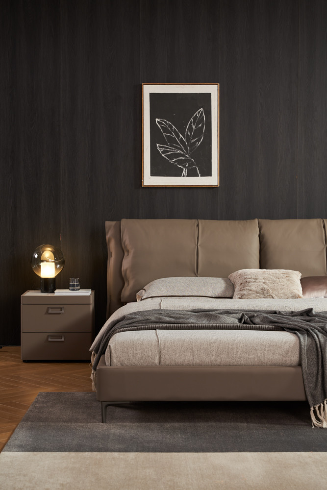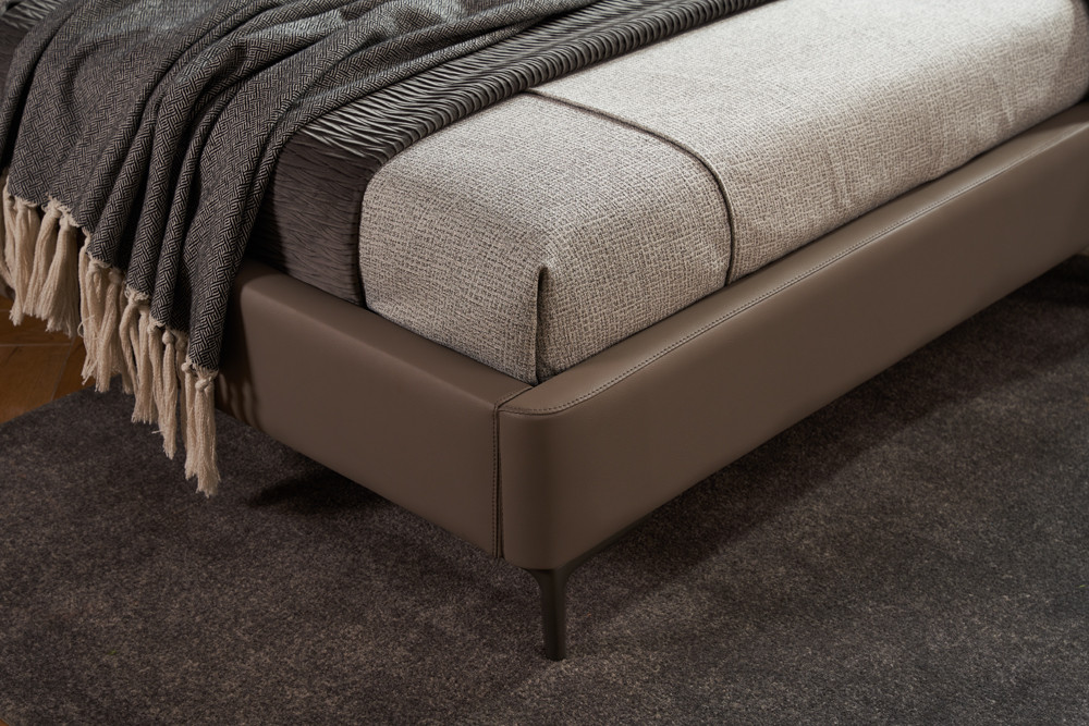 Tracy Leather Bed in FSB014 Dark Taupe Brown