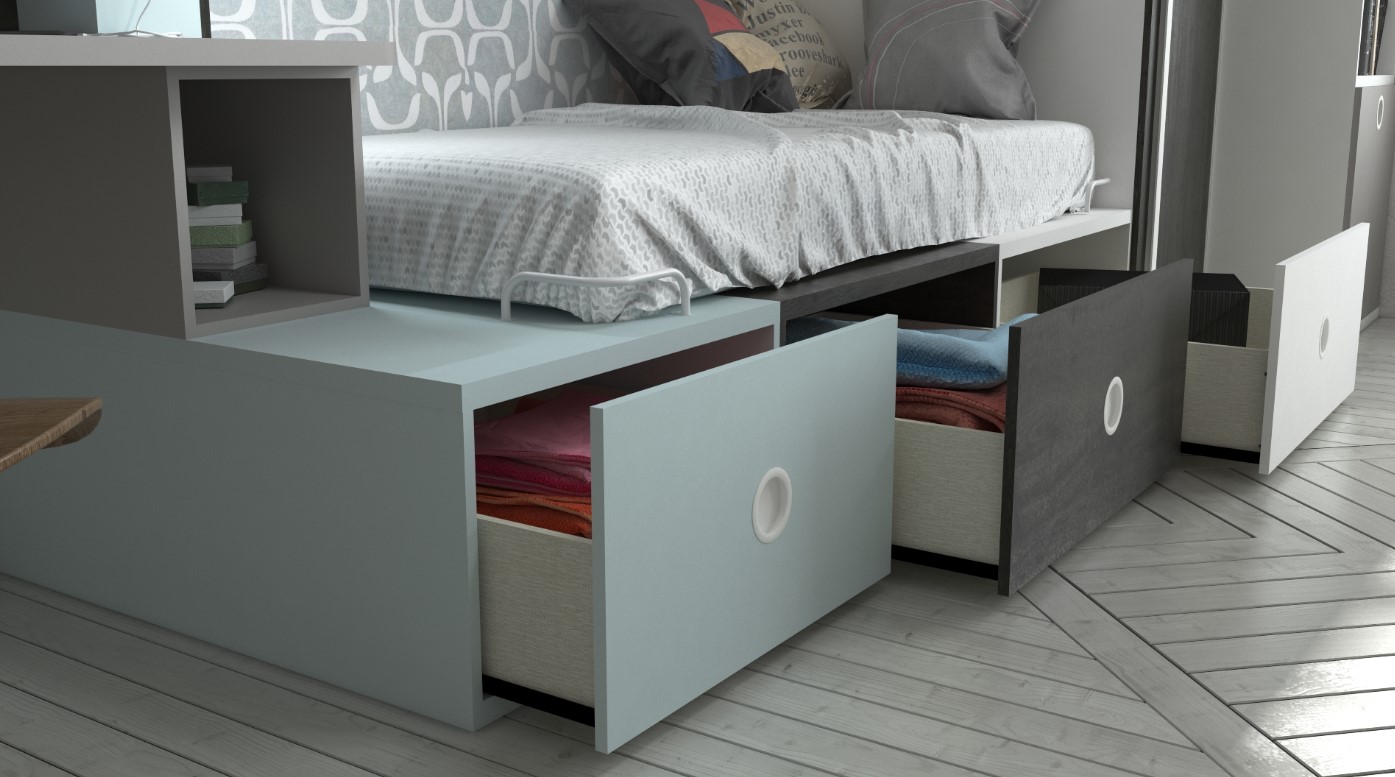 Functional Day Bed: Comes with 3 spacious BOX system drawers for ample under-bed storage, featuring round handles for a cohesive design.