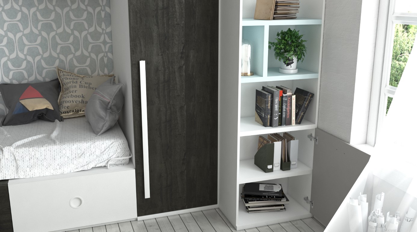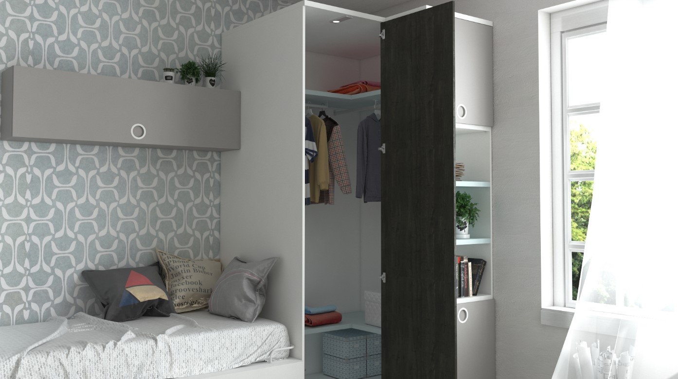 The wardrobe’s dual-depth design and integrated LED lighting system exemplify the collection’s focus on innovation and functionality, meeting the diverse needs of today’s youth.