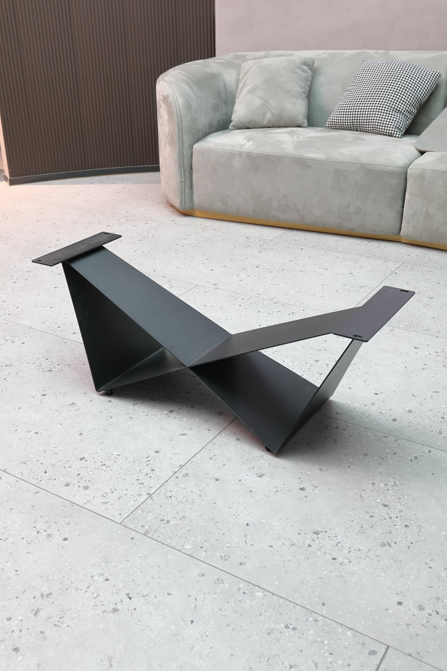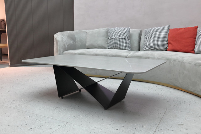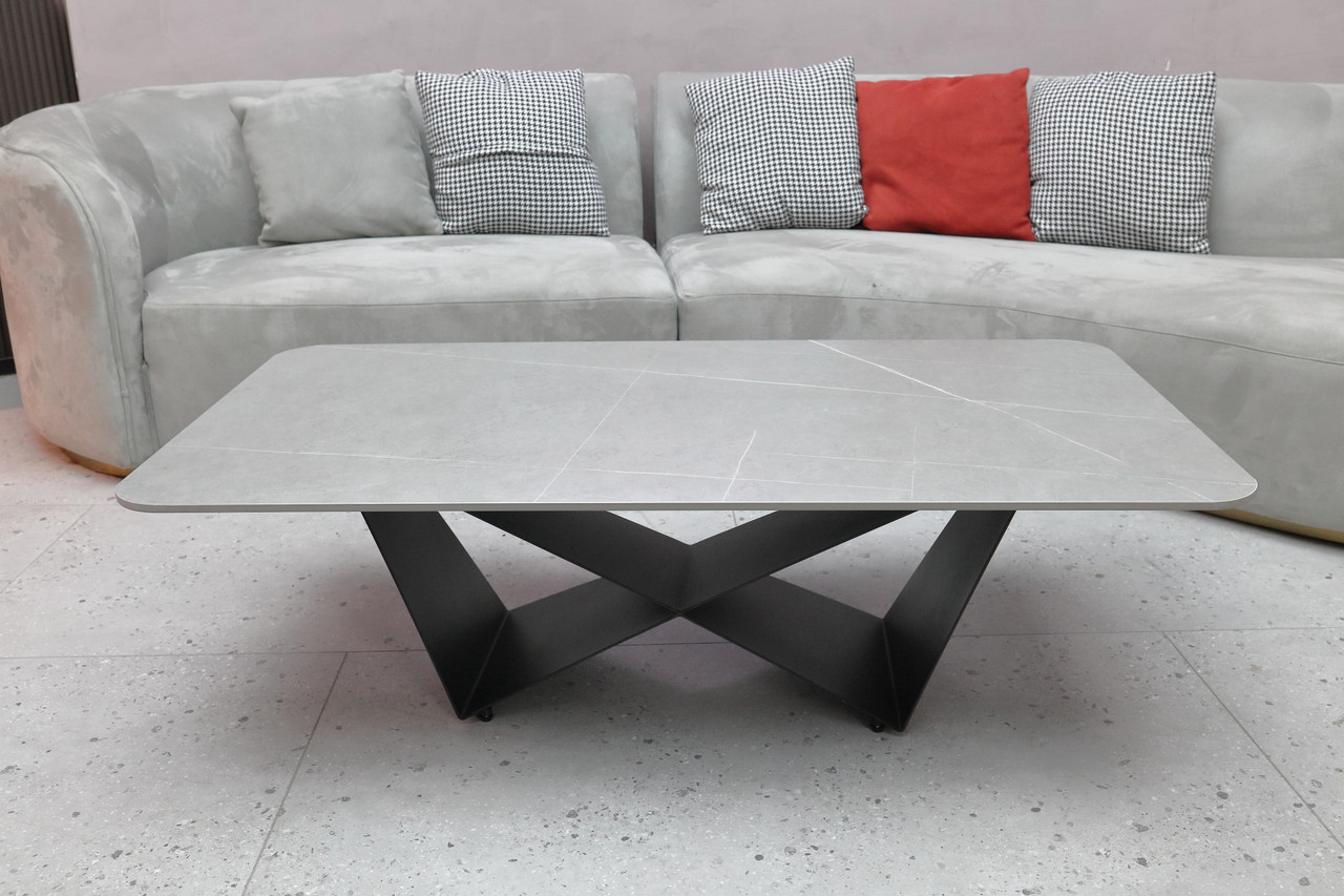 Wally Rectangular Coffee Table with Porcelain Light Grey Top and Black Metal Base